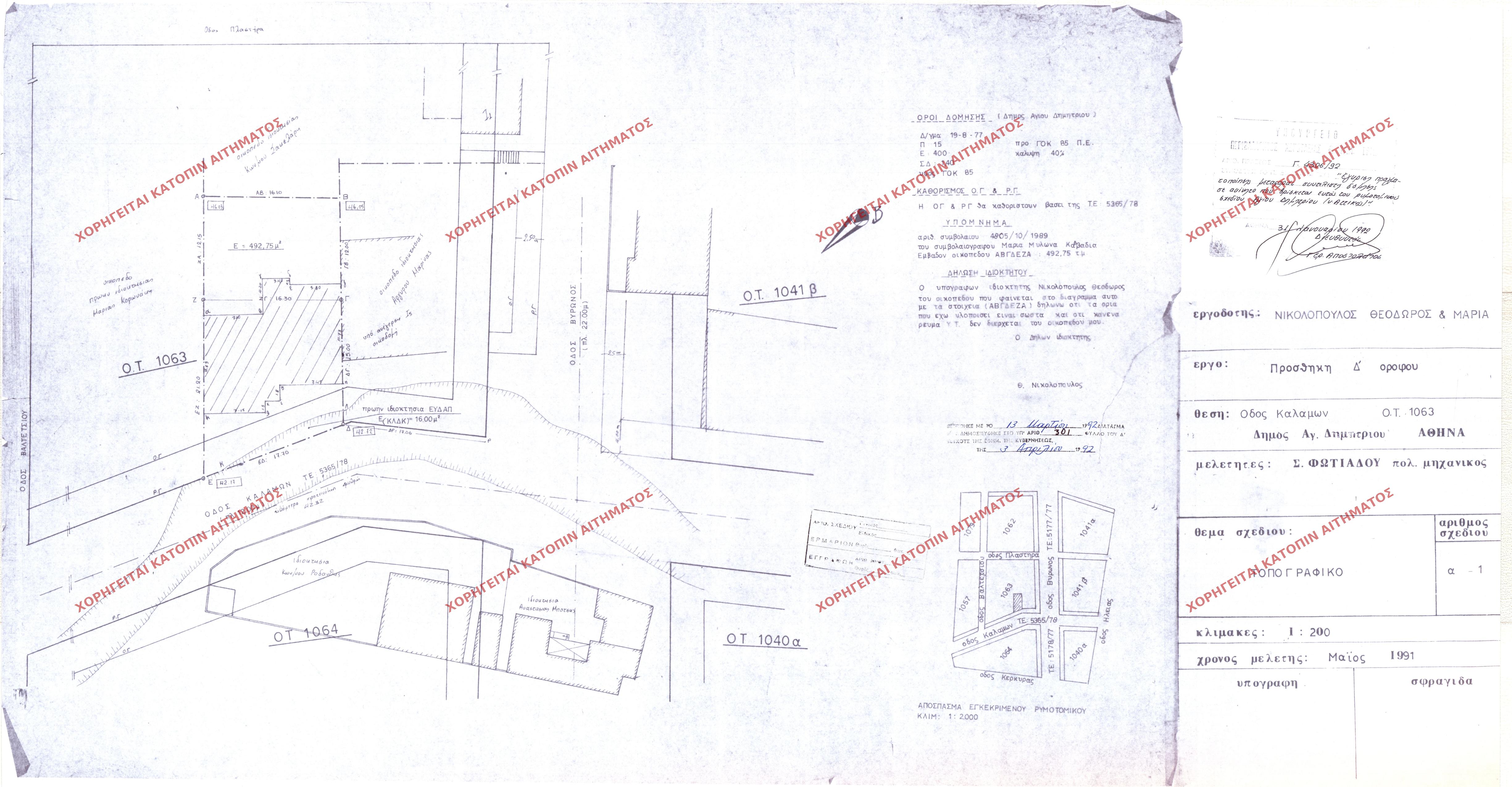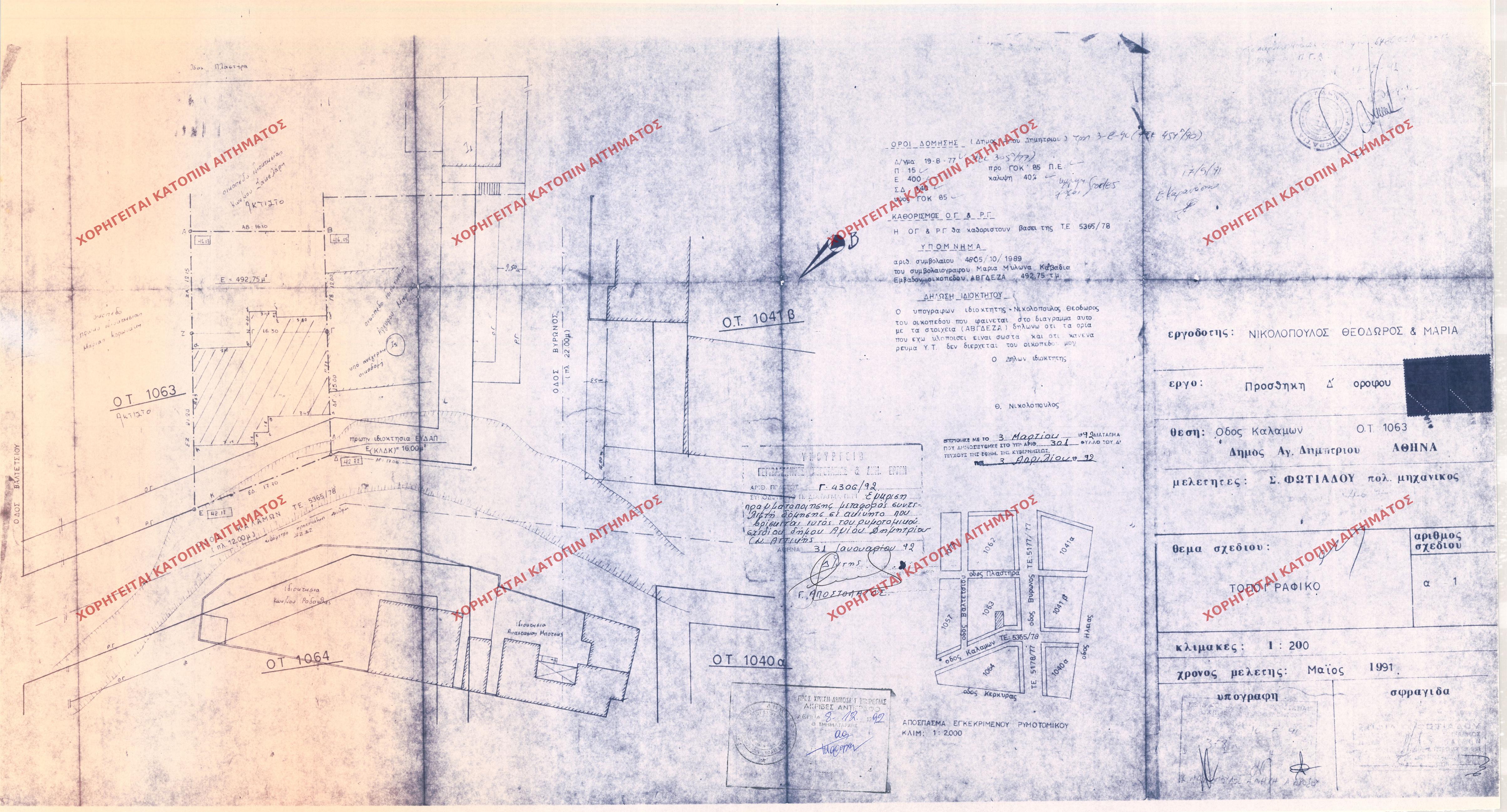 | 92080 | Π.Ε. ΑΤΤΙΚΗΣ | ΑΓΙΟΣ ΔΗΜΗΤΡΙΟΣ | - | 772 / 1991 | 68897 | ΠΡΩΤΟΤΥΠΟ | 1 | Προβολή | ||