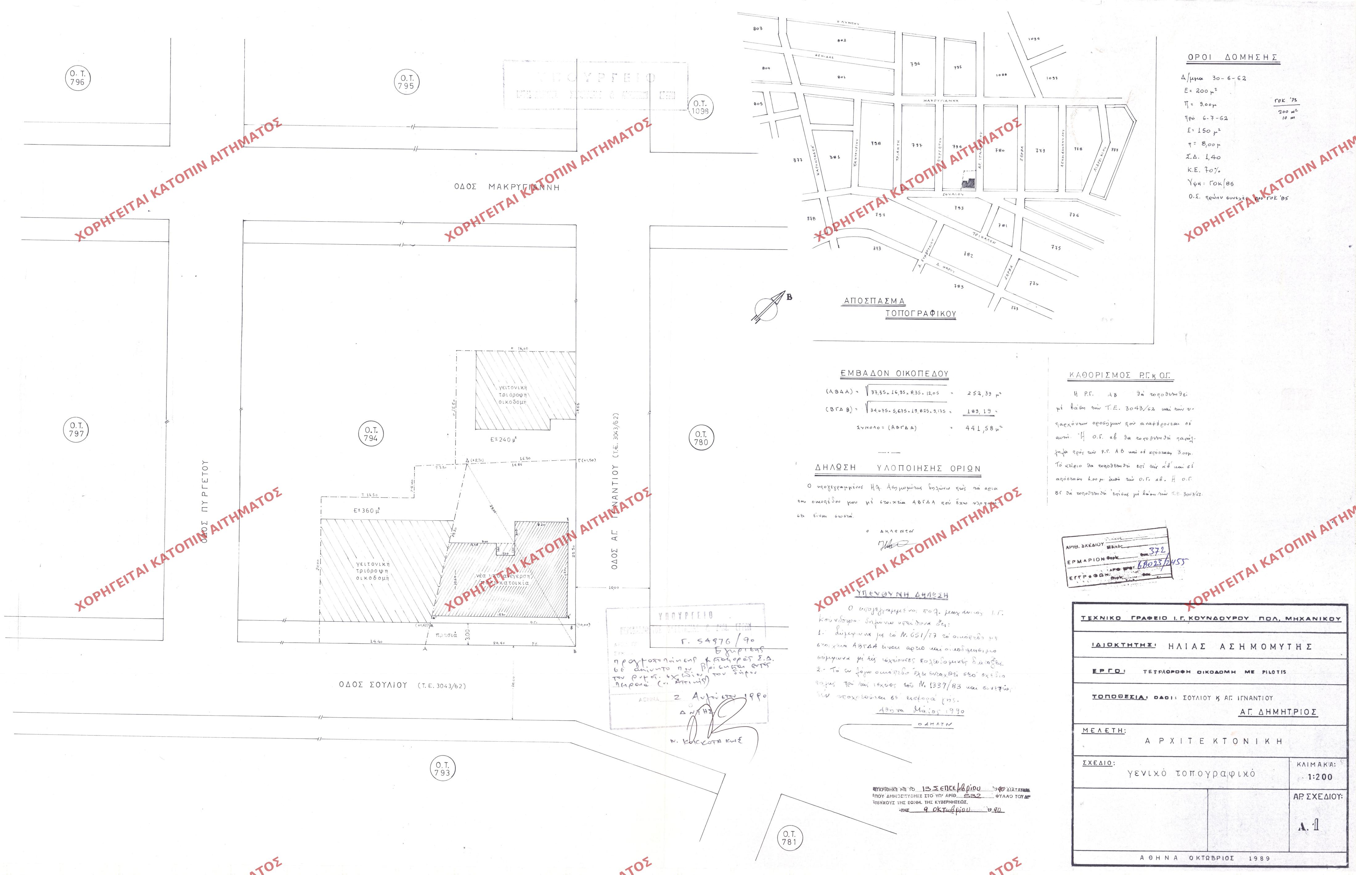 | 90211 | Π.Ε. ΑΤΤΙΚΗΣ | ΑΓΙΟΣ ΔΗΜΗΤΡΙΟΣ | - | 532 / 1990 | 54976 | ΠΡΩΤΟΤΥΠΟ | Α.2 | Προβολή | ||