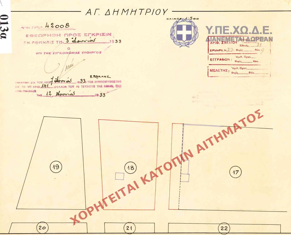 | 68806 | Π.Ε. ΑΤΤΙΚΗΣ | ΑΓΙΟΣ ΔΗΜΗΤΡΙΟΣ | - | 141 / 1933 | 42008 | ΠΡΩΤΟΤΥΠΟ | 1 | Προβολή | ||