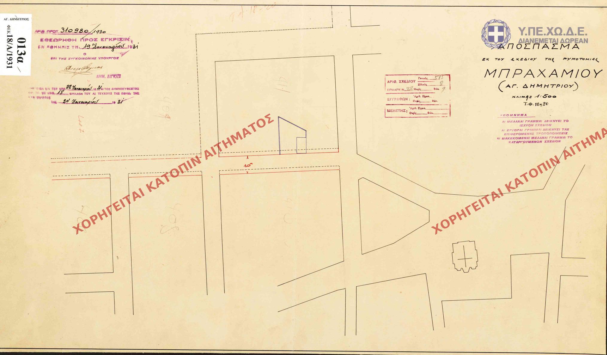 | 64221 | Π.Ε. ΑΤΤΙΚΗΣ | ΑΓΙΟΣ ΔΗΜΗΤΡΙΟΣ | - | 18 / 1930 | 310980 | ΠΡΩΤΟΤΥΠΟ | 1 | Προβολή | ||