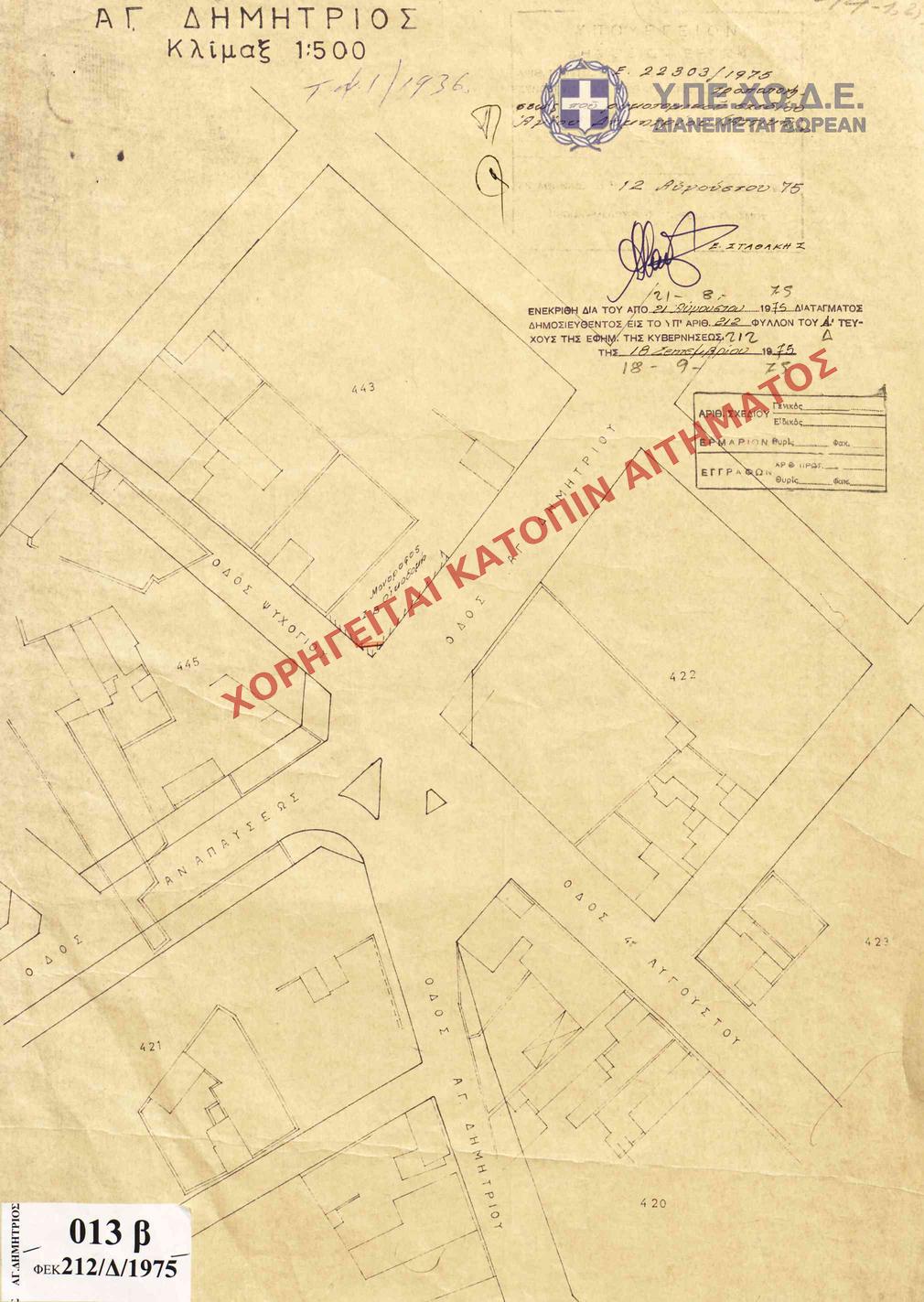 | 64351 | Π.Ε. ΑΤΤΙΚΗΣ | ΑΓΙΟΣ ΔΗΜΗΤΡΙΟΣ | - | 212 / 1975 | 22303 | ΠΡΩΤΟΤΥΠΟ | 1 | Προβολή | ||