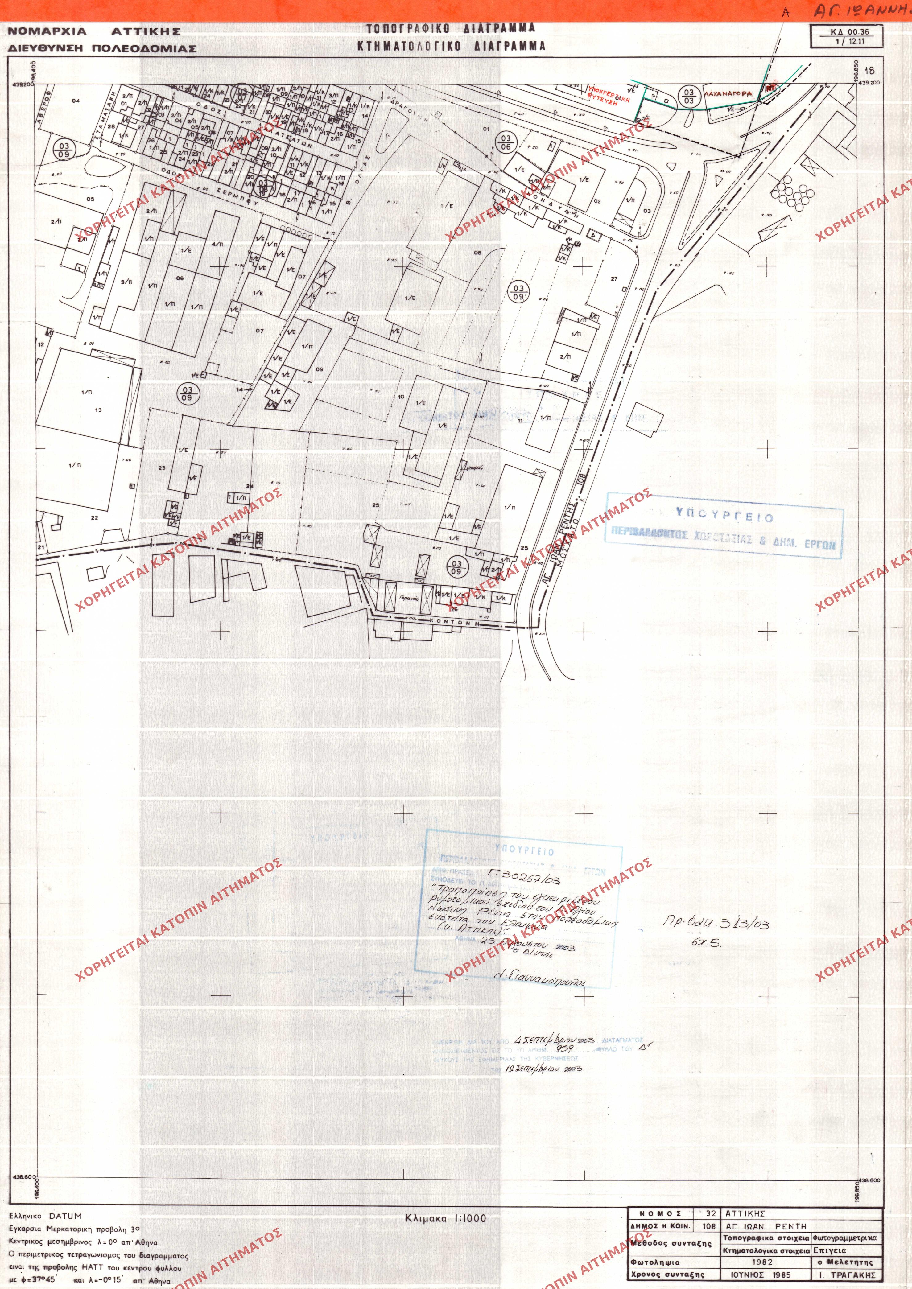 | 9687 | Π.Ε. ΑΤΤΙΚΗΣ | ΑΓΙΟΣ ΙΩΑΝΝΗΣ ΡΕΝΤΗΣ | - | 458 / 1982 | 30344 | ΔΗΜΟΣΙΕΥΜΕΝΟ ΣΕ ΦΕΚ | 18 | Προβολή | ||