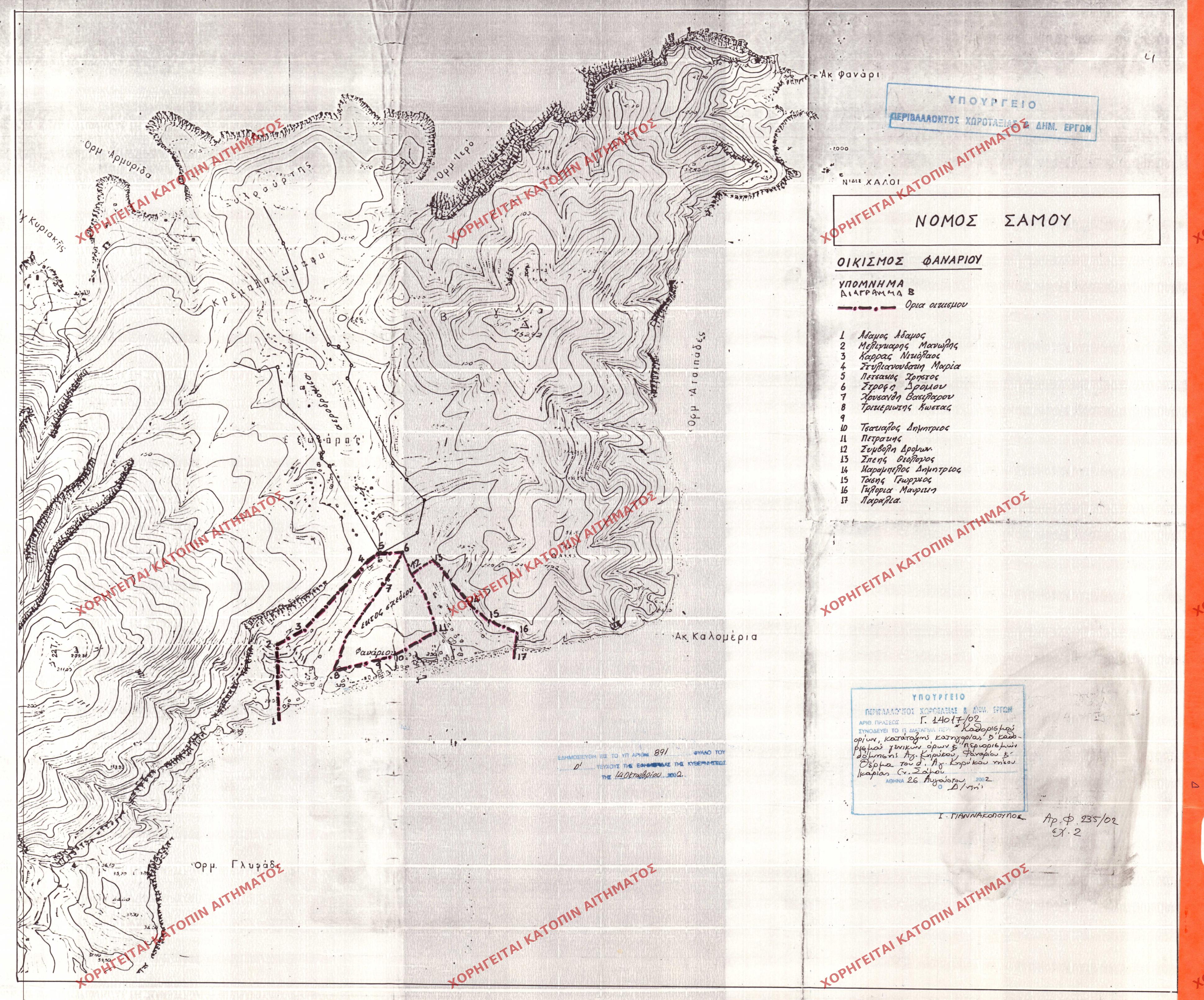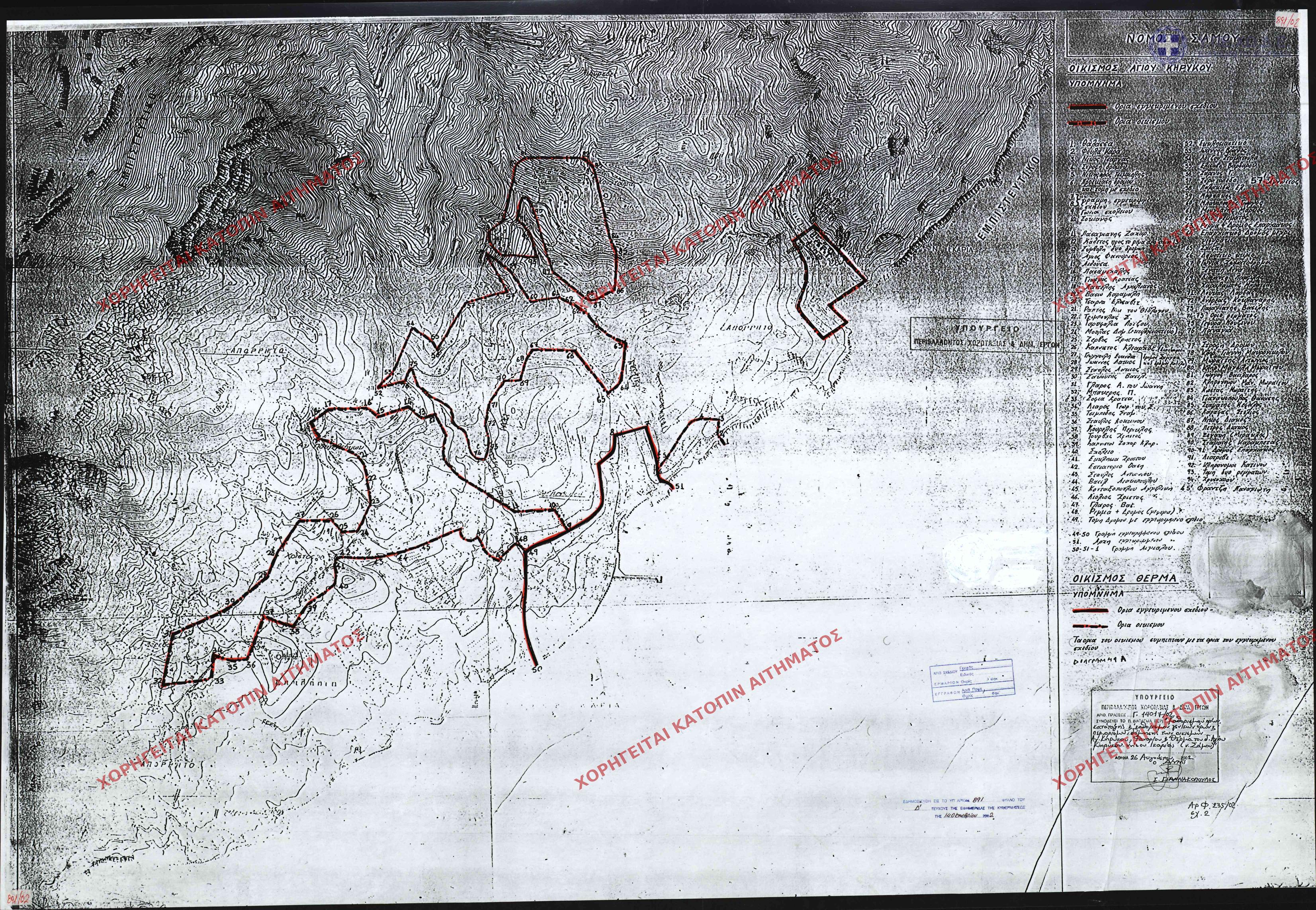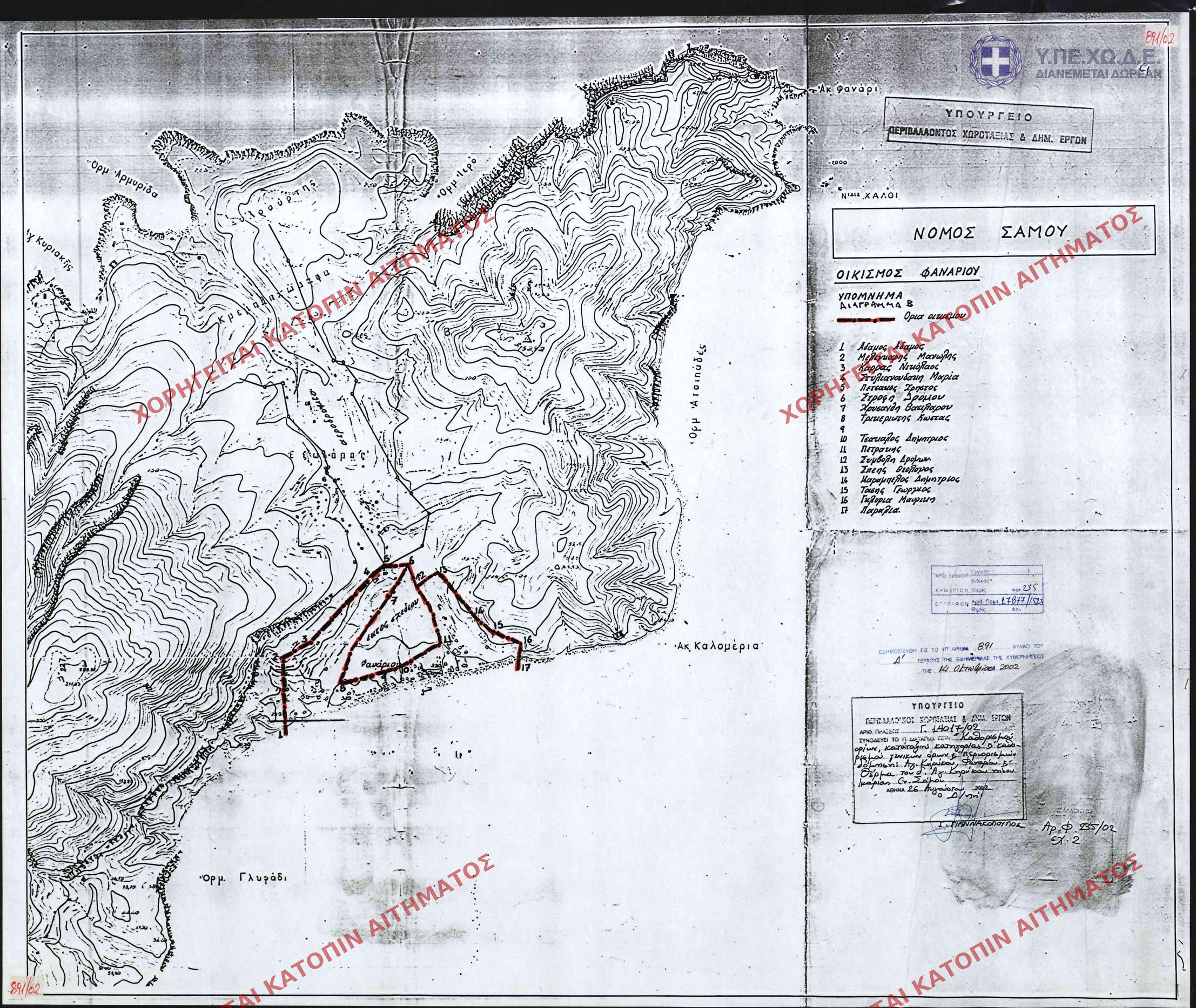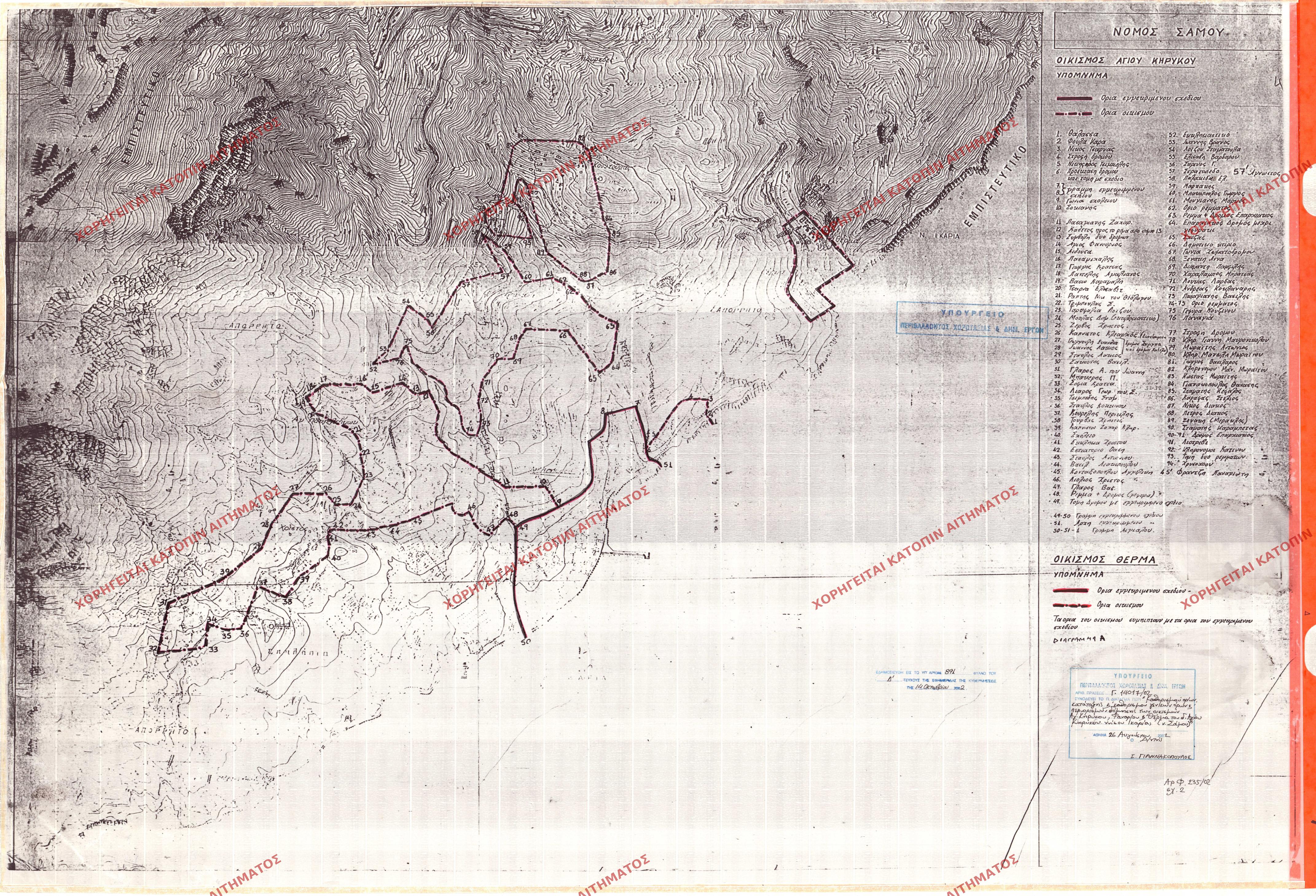 | 23863 | Π.Ε. ΣΑΜΟΥ | ΑΓΙΟΣ ΚΗΡΥΚΟΣ - ΦΑΝΑΡΙ - ΘΕΡΜΑ | - | 891 / 2002 | 14017 | ΔΗΜΟΣΙΕΥΜΕΝΟ ΣΕ ΦΕΚ | 01 | Προβολή | ||