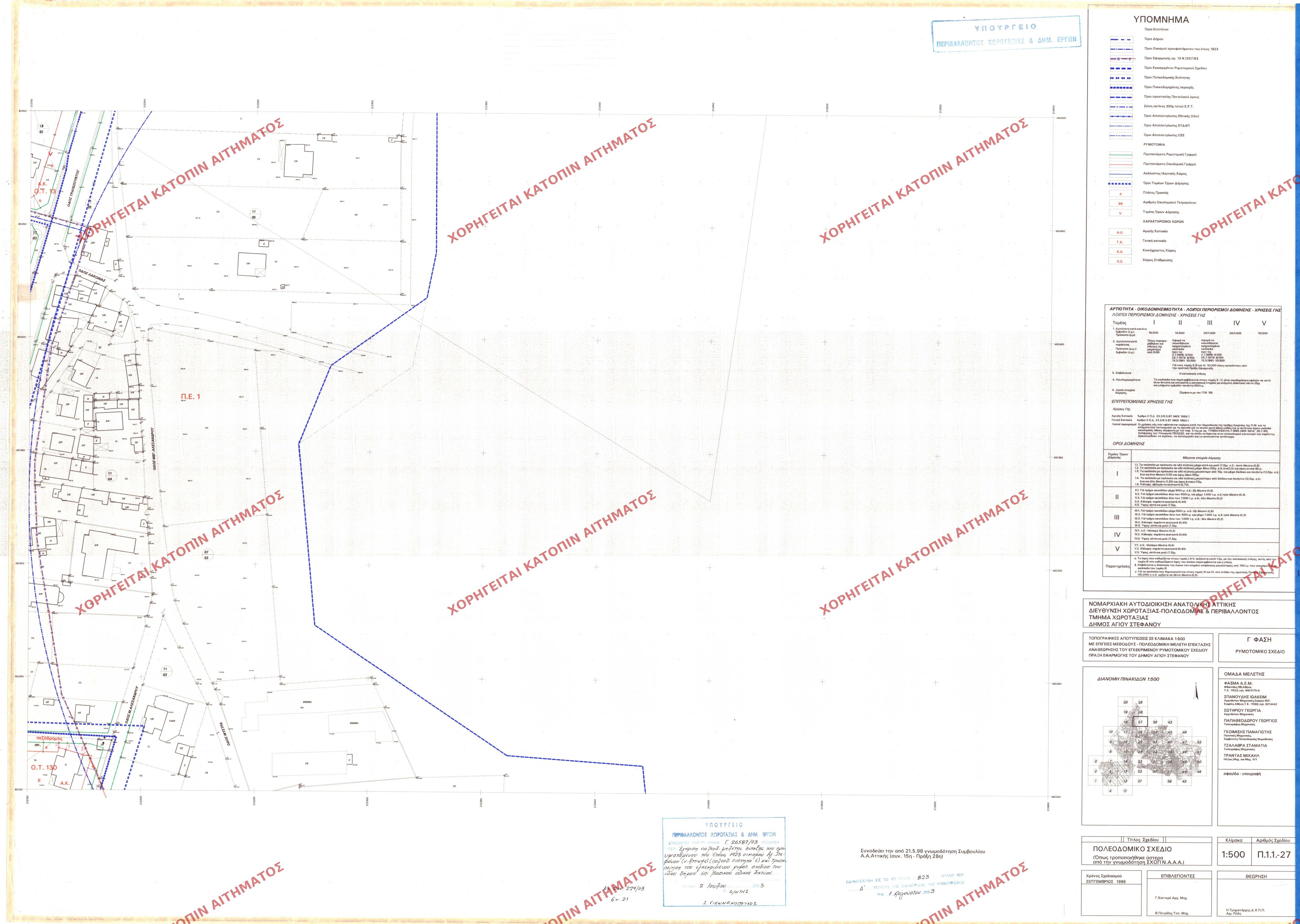 | 19688 | Π.Ε. ΑΤΤΙΚΗΣ | ΑΓΙΟΣ ΣΤΕΦΑΝΟΣ | - | 823 / 2003 | 26587 | ΠΡΩΤΟΤΥΠΟ | 23 | Προβολή | ||