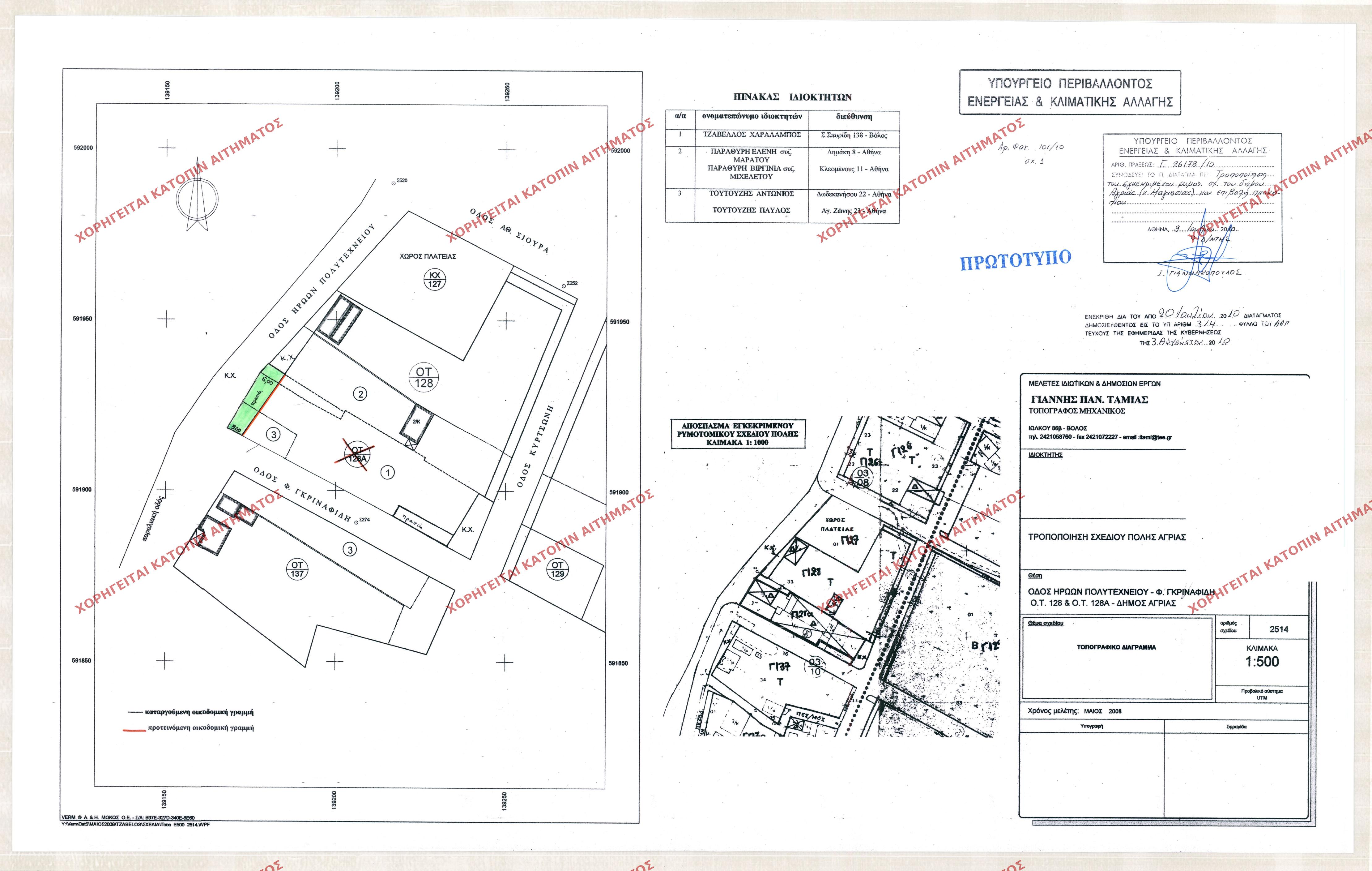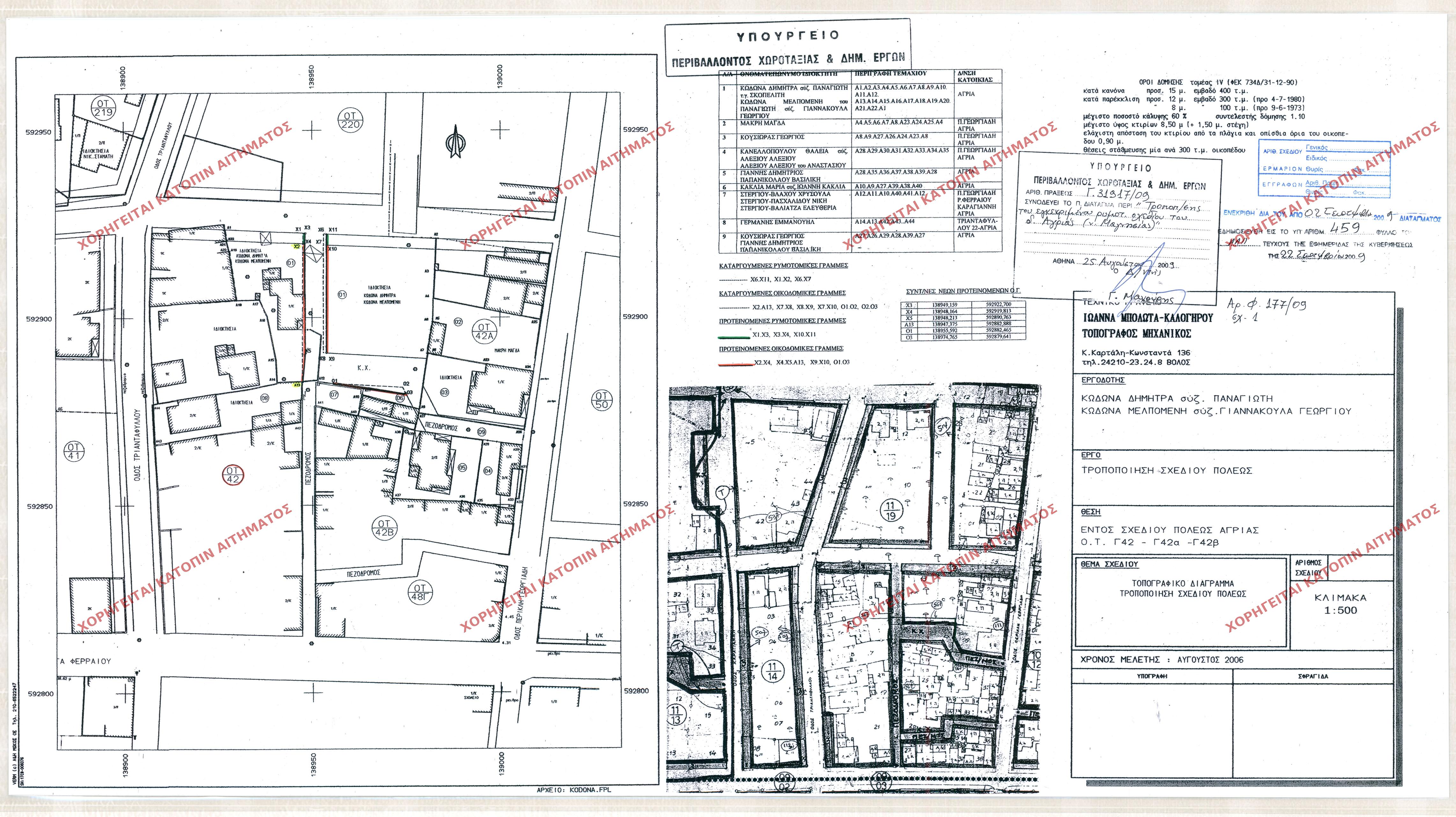 | Κωδ. Διαγρ. | Περιφερειακή Ενότητα | Δήμος κατά ΦΕΚ / Κοινότητα | Θέση | Αριθμός και Έτος ΦΕΚ | Αριθμός Πράξης | Τύπος Διαγράμματος | Πινακίδα | Ενέργειες | ||