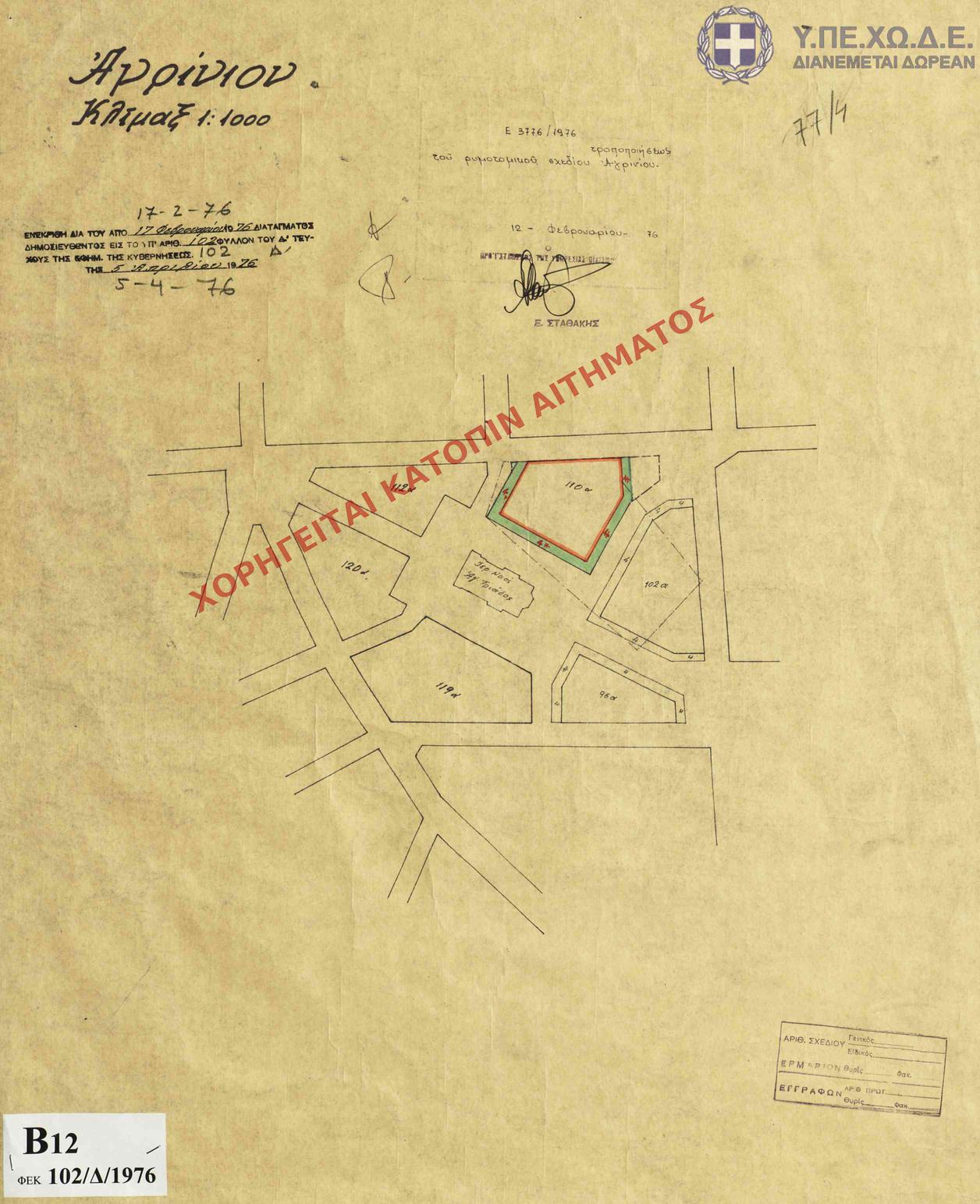 | 81436 | Π.Ε. ΑΙΤΩΛΟΑΚΑΡΝΑΝΙΑΣ | ΑΓΡΙΝΙΟ | - | 102 / 1976 | 3776 | ΠΡΩΤΟΤΥΠΟ | - | Προβολή | ||