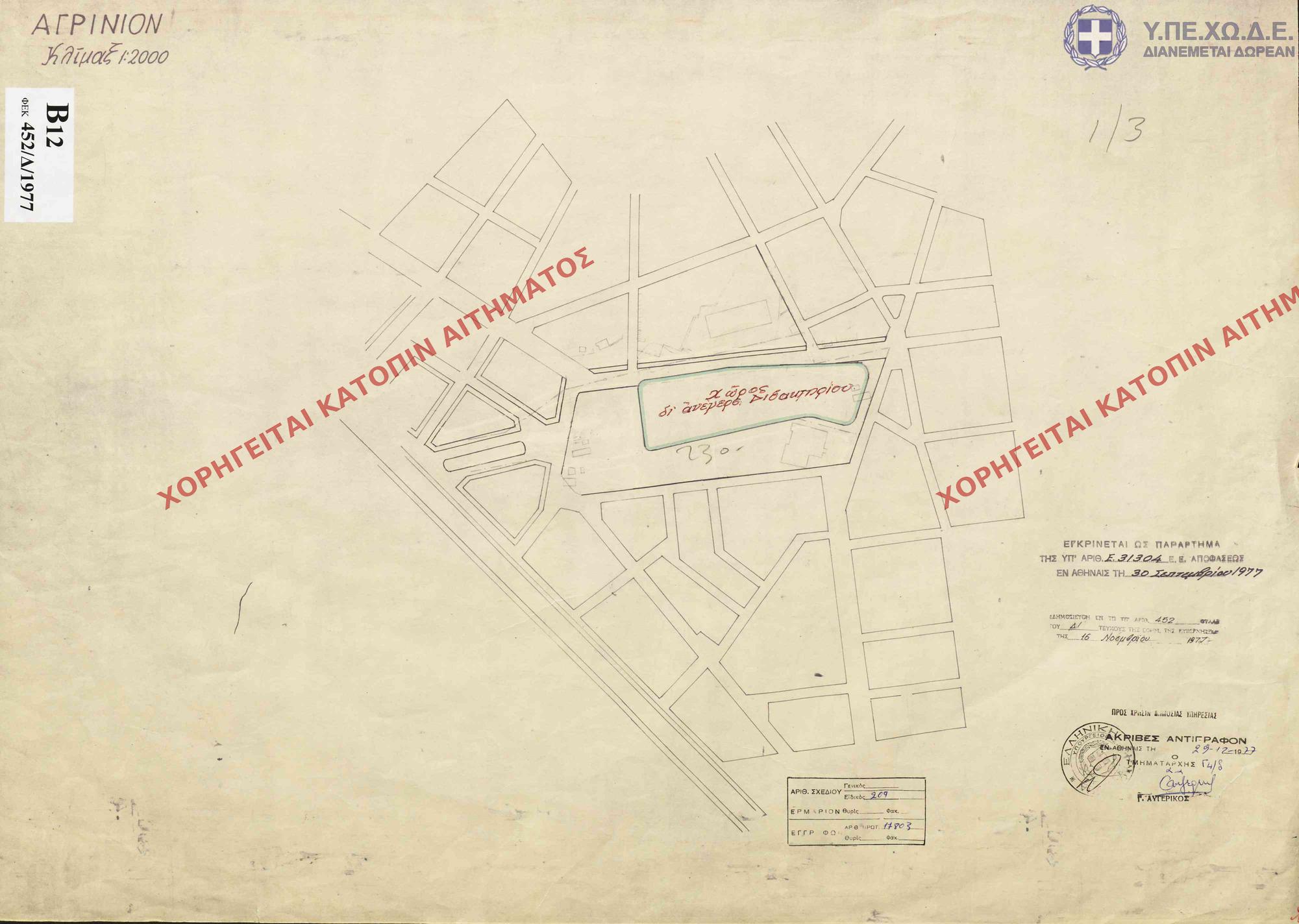 | 81438 | Π.Ε. ΑΙΤΩΛΟΑΚΑΡΝΑΝΙΑΣ | ΑΓΡΙΝΙΟ | - | 452 / 1977 | 31304 | ΠΡΩΤΟΤΥΠΟ | - | Προβολή | ||