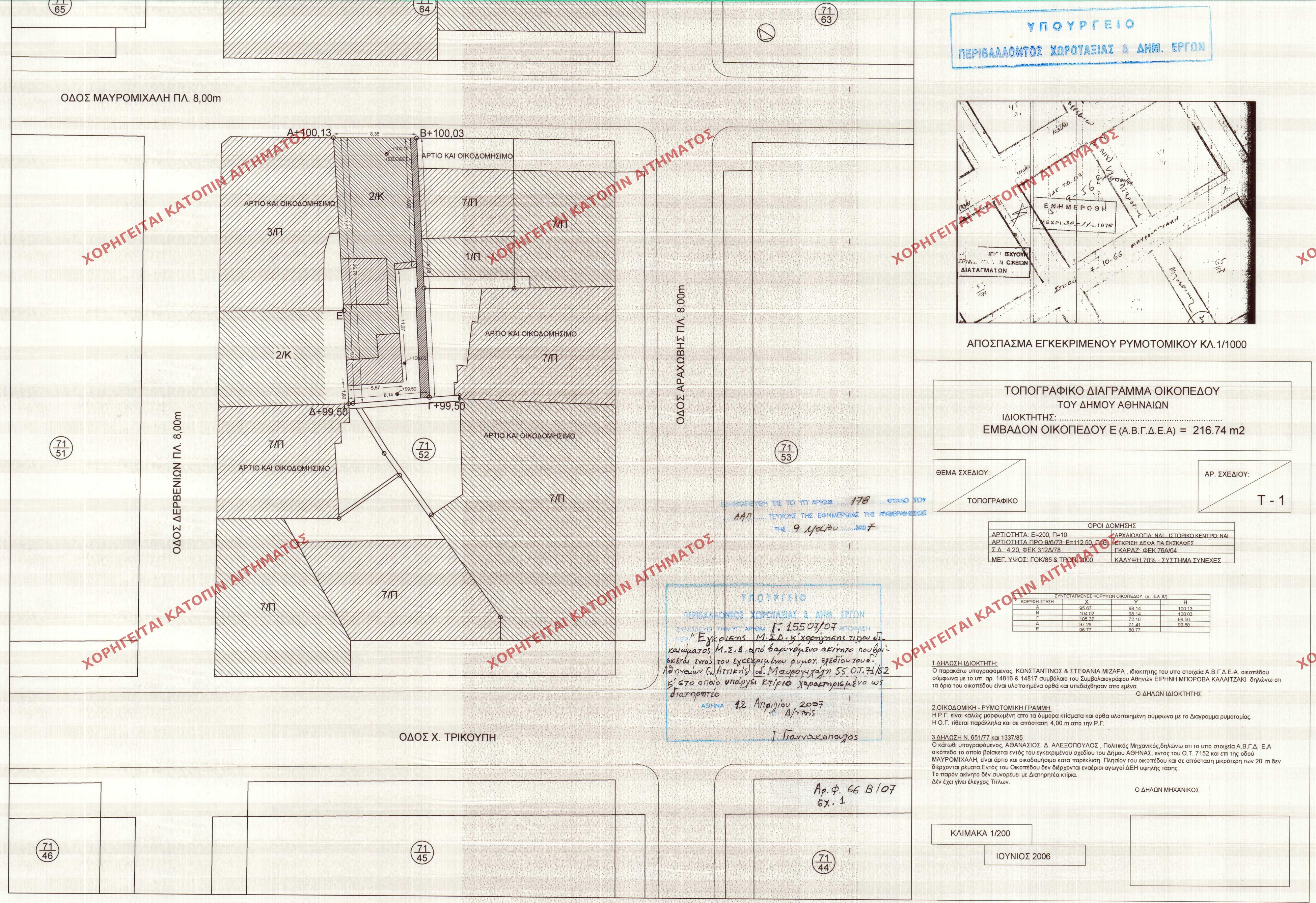 | 43747 | Π.Ε. ΑΤΤΙΚΗΣ | ΑΘΗΝΑ | - | 181 / 2007 | 16791 | ΠΡΩΤΟΤΥΠΟ | ΤΟΠΟΓΡΑΦΙΚΟ ΔΙΑΓΡΑΜΜΑ | Προβολή | ||