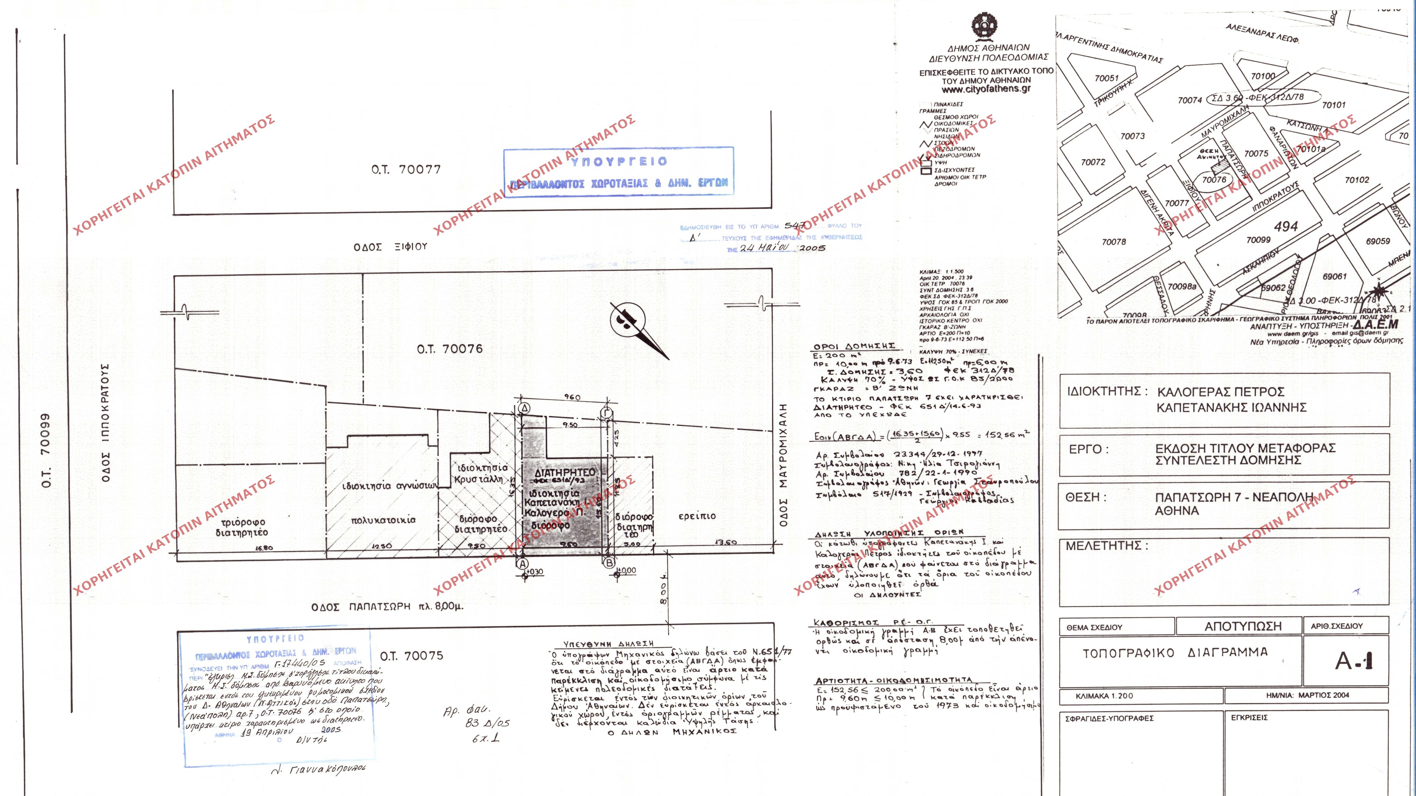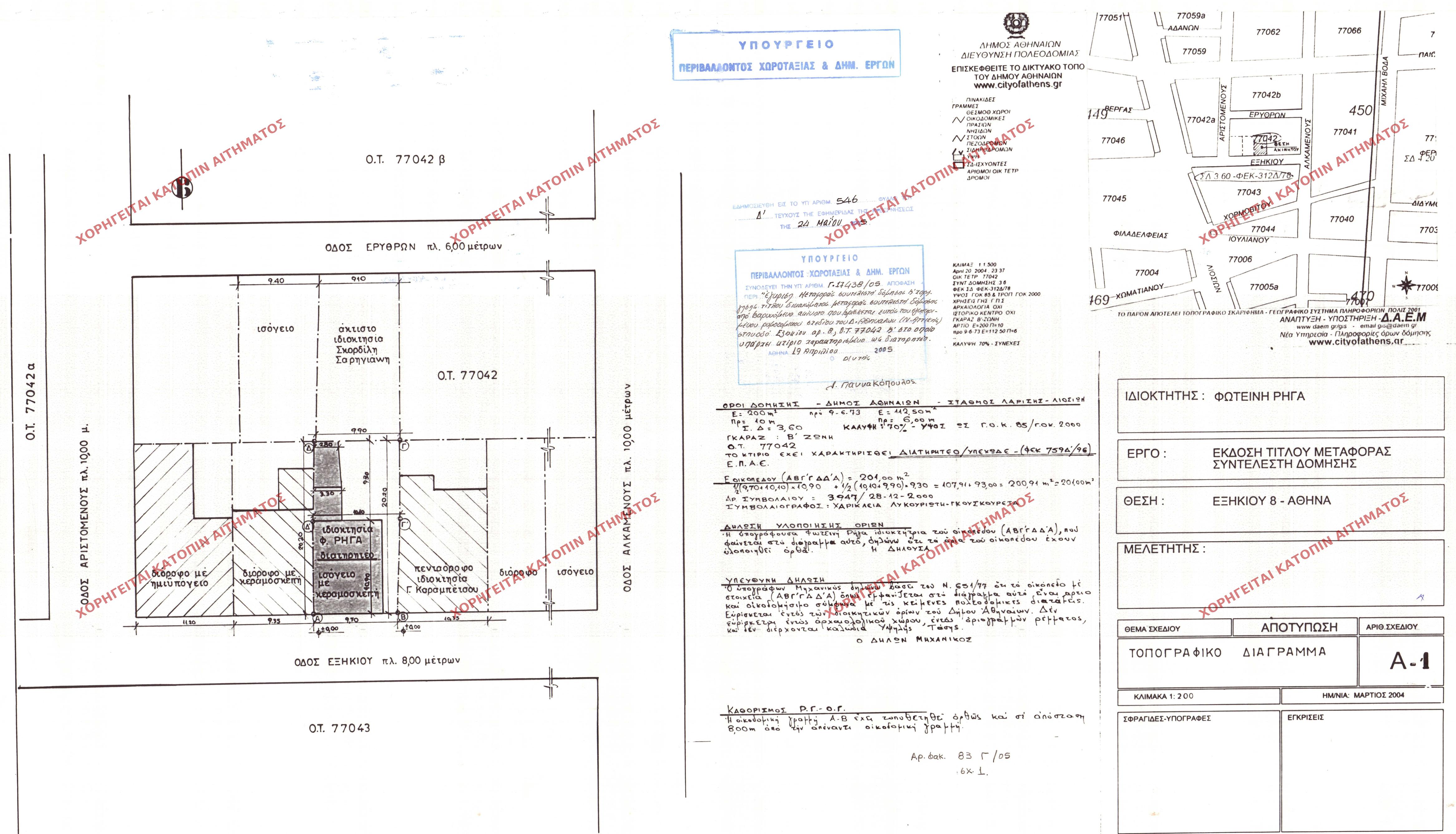 | 43971 | Π.Ε. ΑΤΤΙΚΗΣ | ΑΘΗΝΑ | - | 546 / 2005 | 17438 | ΠΡΩΤΟΤΥΠΟ | ΤΟΠΟΓΡΑΦΙΚΟ ΔΙΑΓΡΑΜΜΑ | Προβολή | ||