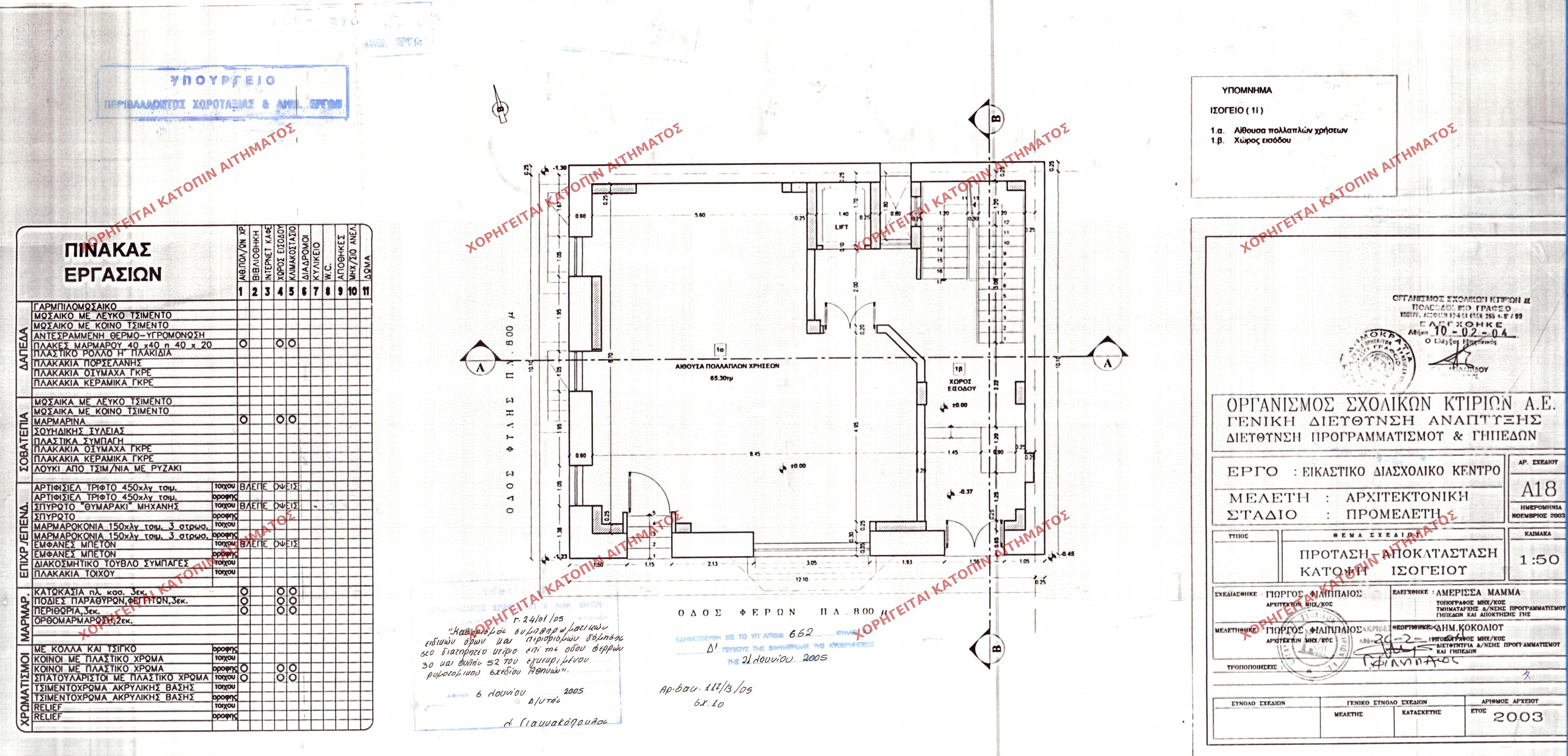 | 43976 | Π.Ε. ΑΤΤΙΚΗΣ | ΑΘΗΝΑ | - | 75 / 2005 | 844 | ΠΡΩΤΟΤΥΠΟ | ΚΑΤΟΨΗ ΙΣΟΓΕΙΟΥ | Προβολή | ||