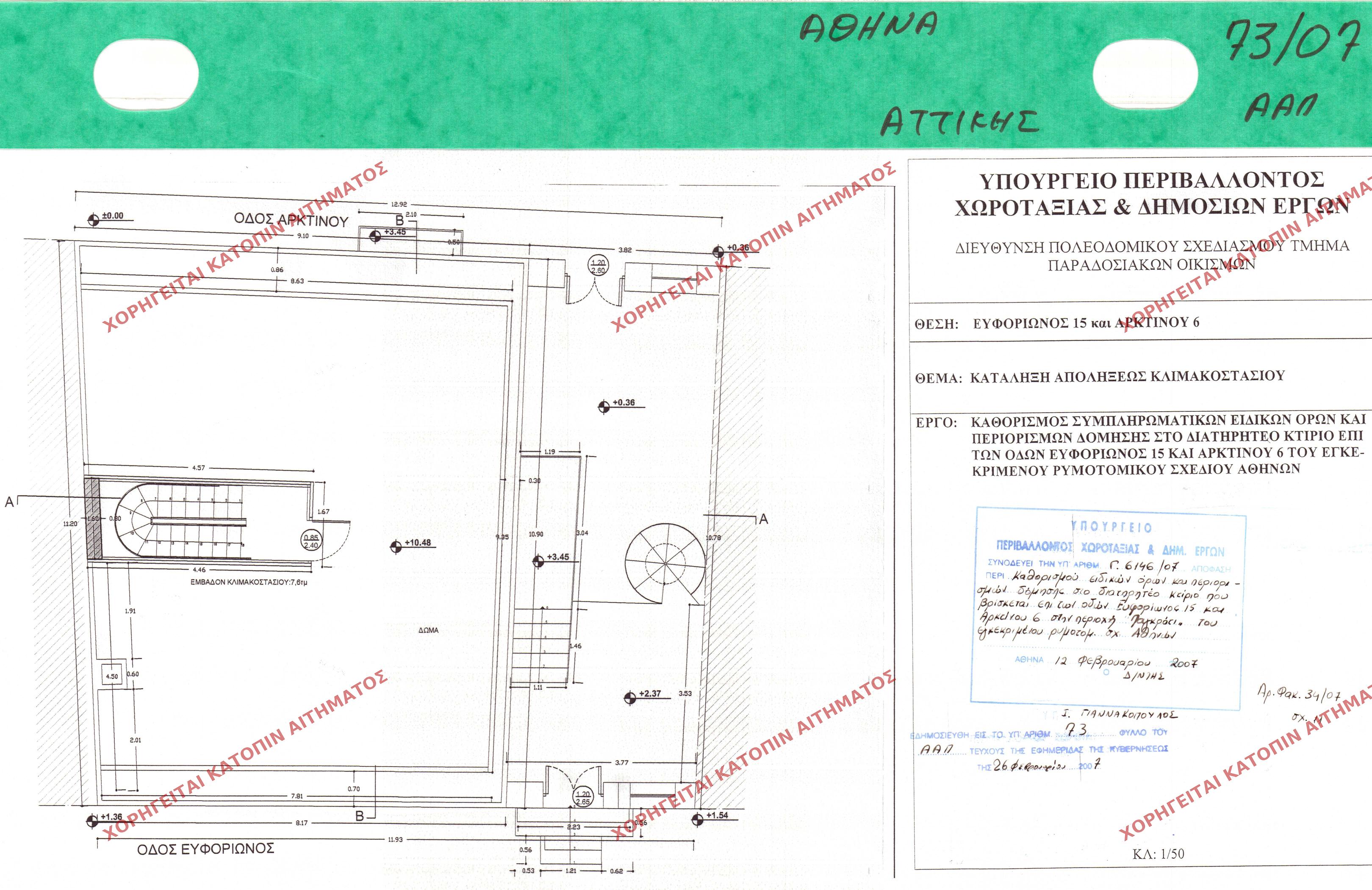 | 43836 | Π.Ε. ΑΤΤΙΚΗΣ | ΑΘΗΝΑ | - | 73 / 2007 | 6146 | ΠΡΩΤΟΤΥΠΟ | ΚΑΤΟΨΗ Α ΟΡΟΦΟΥ ΟΨΗ ΟΔΟΥ ΕΥΦΟΡΙΩΝΟΣ | Προβολή | ||