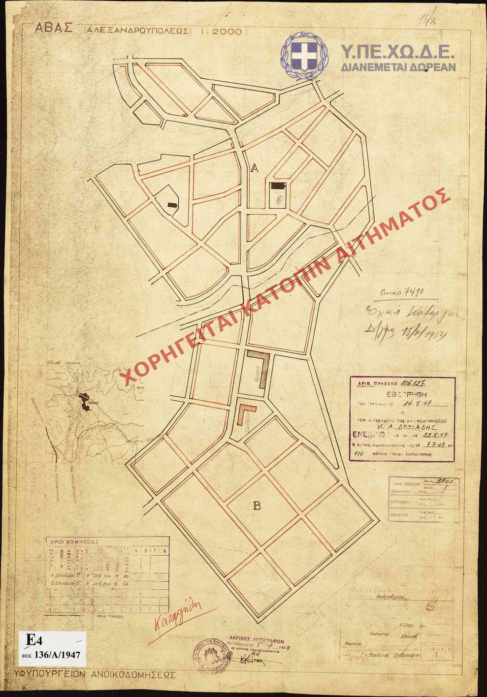 | 49214 | Π.Ε. ΕΒΡΟΥ | ΑΒΑΣ | - | 136 / 1947 | 106127 | ΠΡΩΤΟΤΥΠΟ | 1 | Προβολή | ||