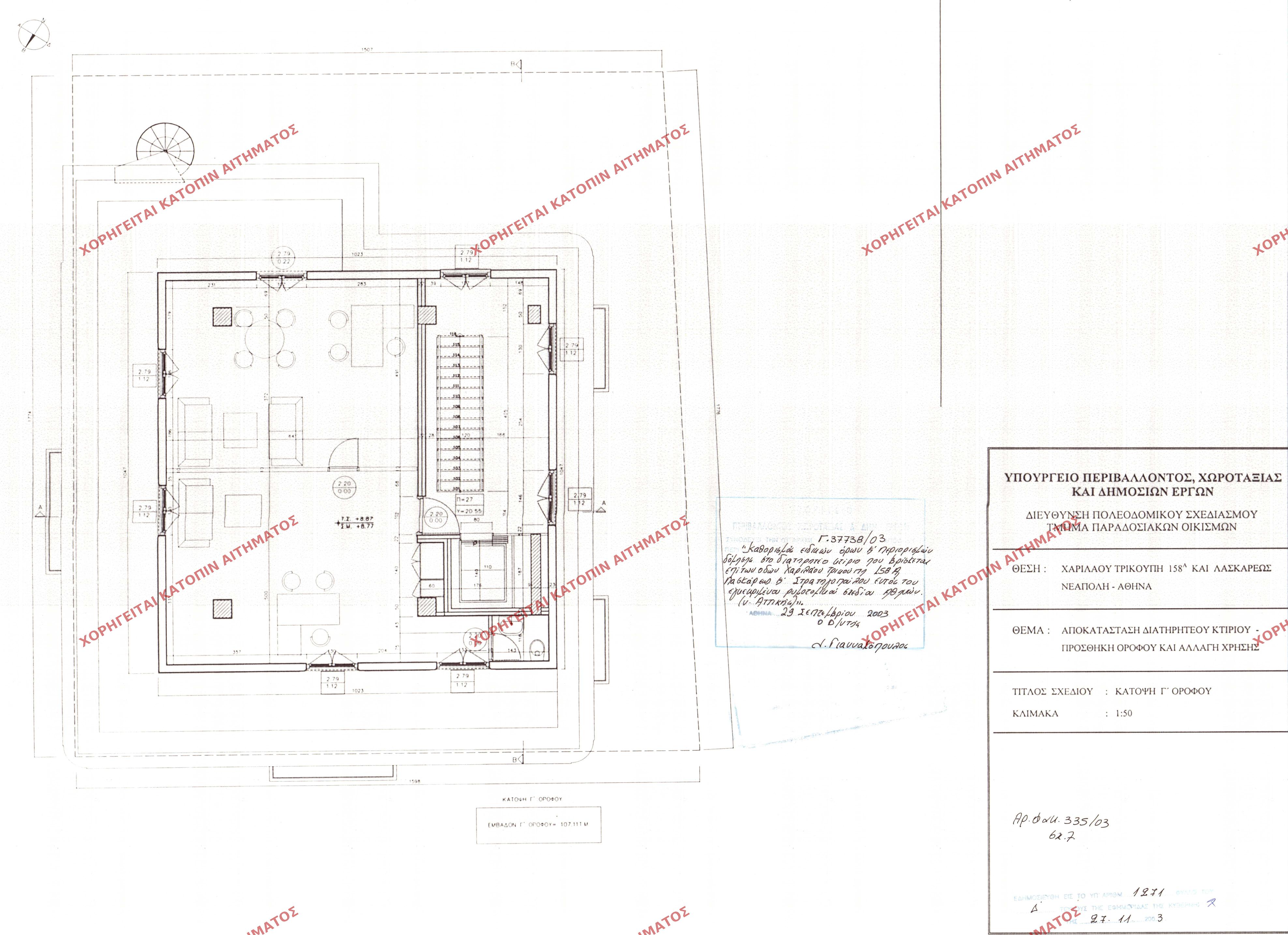 | 42966 | Π.Ε. ΑΤΤΙΚΗΣ | ΑΘΗΝΑ | - | 1271 / 2003 | 37738 | ΠΡΩΤΟΤΥΠΟ | ΚΑΤΟΨΗ Γ ΟΡΟΦΟΥ | Προβολή | ||