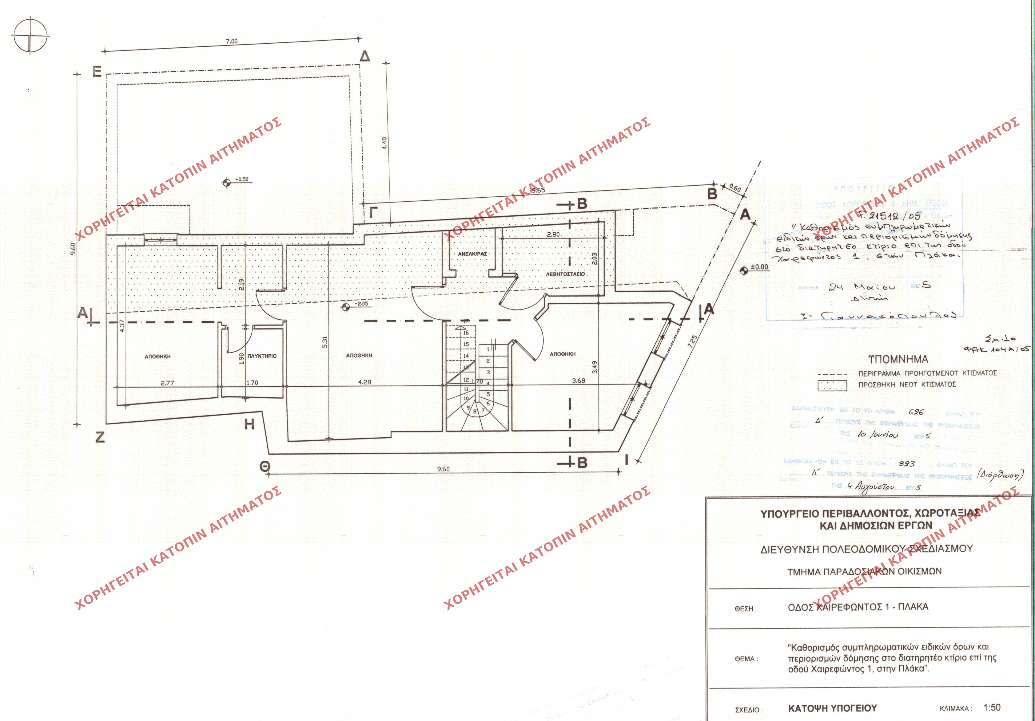 | 43546 | Π.Ε. ΑΤΤΙΚΗΣ | ΑΘΗΝΑ | - | 626 / 2005 | 21512 | ΠΡΩΤΟΤΥΠΟ | ΚΑΤΟΨΗ ΥΠΟΓΕΙΟΥ | Προβολή | ||