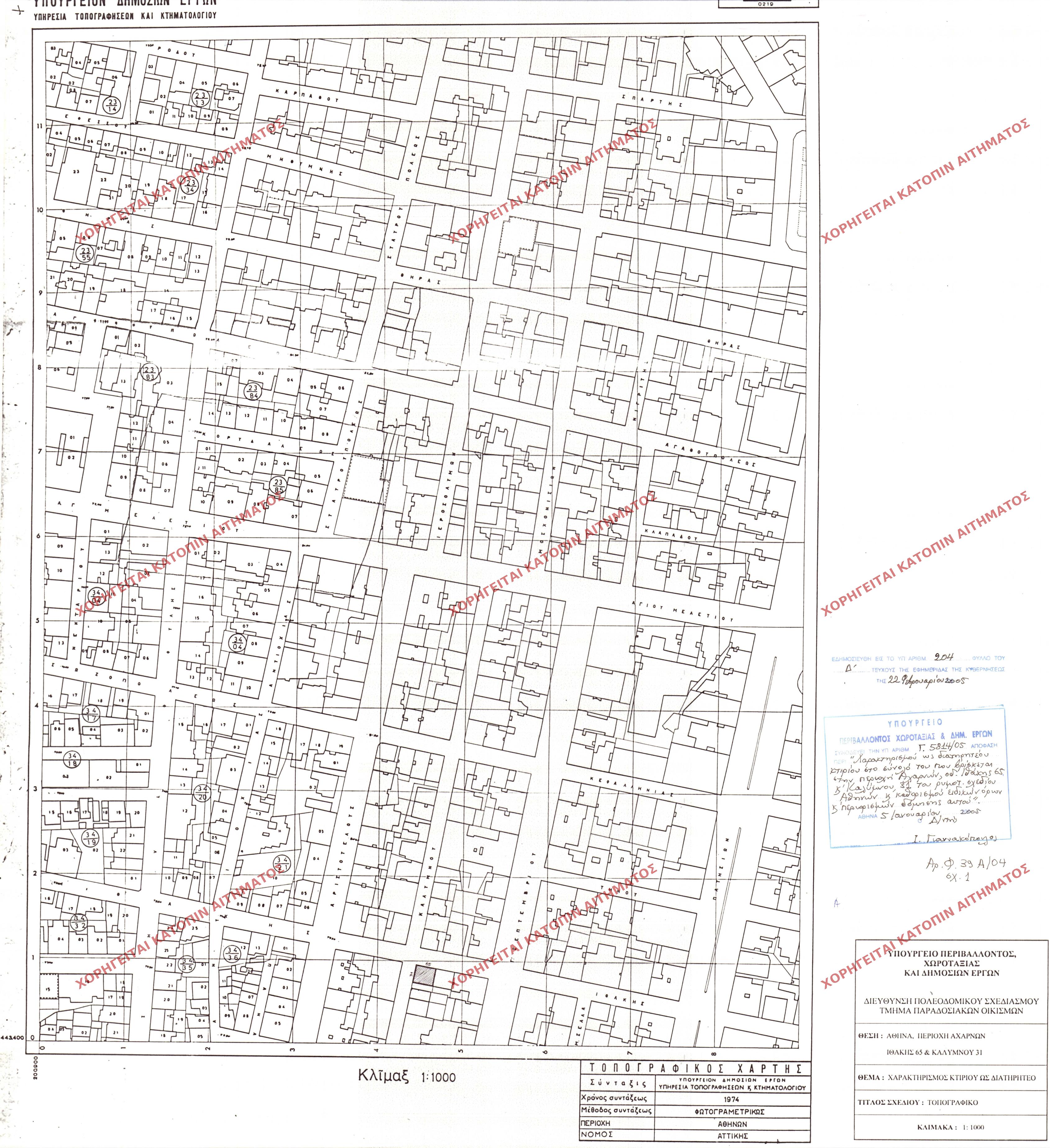 | 43515 | Π.Ε. ΑΤΤΙΚΗΣ | ΑΘΗΝΑ | - | 70 / 2005 | 53705 | ΠΡΩΤΟΤΥΠΟ | ΤΟΠΟΓΡΑΦΙΚΟ ΔΙΑΓΡΑΜΜΑ | Προβολή | ||