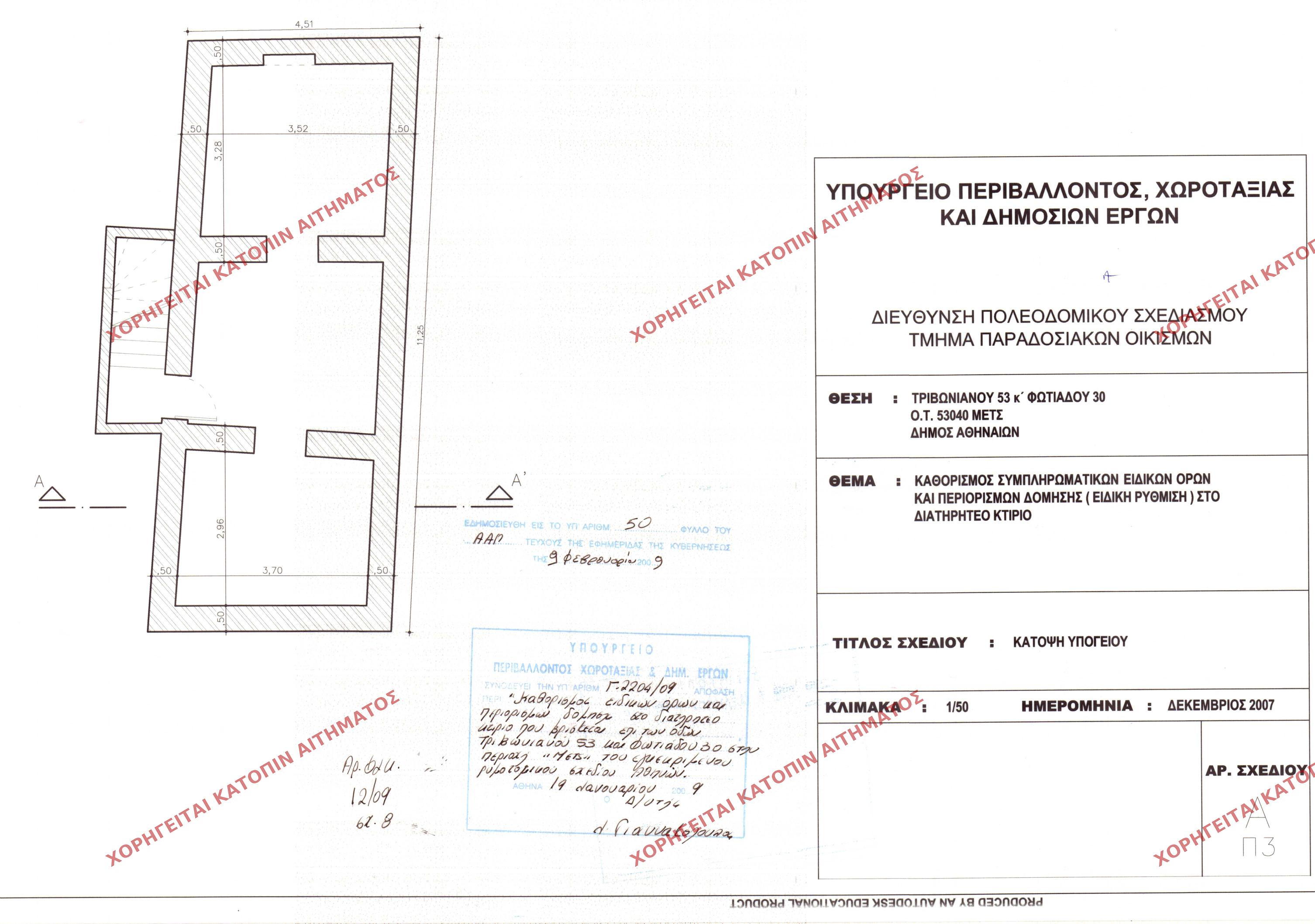 | 43301 | Π.Ε. ΑΤΤΙΚΗΣ | ΑΘΗΝΑ | - | 50 / 2009 | 2204 | ΠΡΩΤΟΤΥΠΟ | ΚΑΤΟΨΗ ΥΠΟΓΕΙΟΥ | Προβολή | ||
