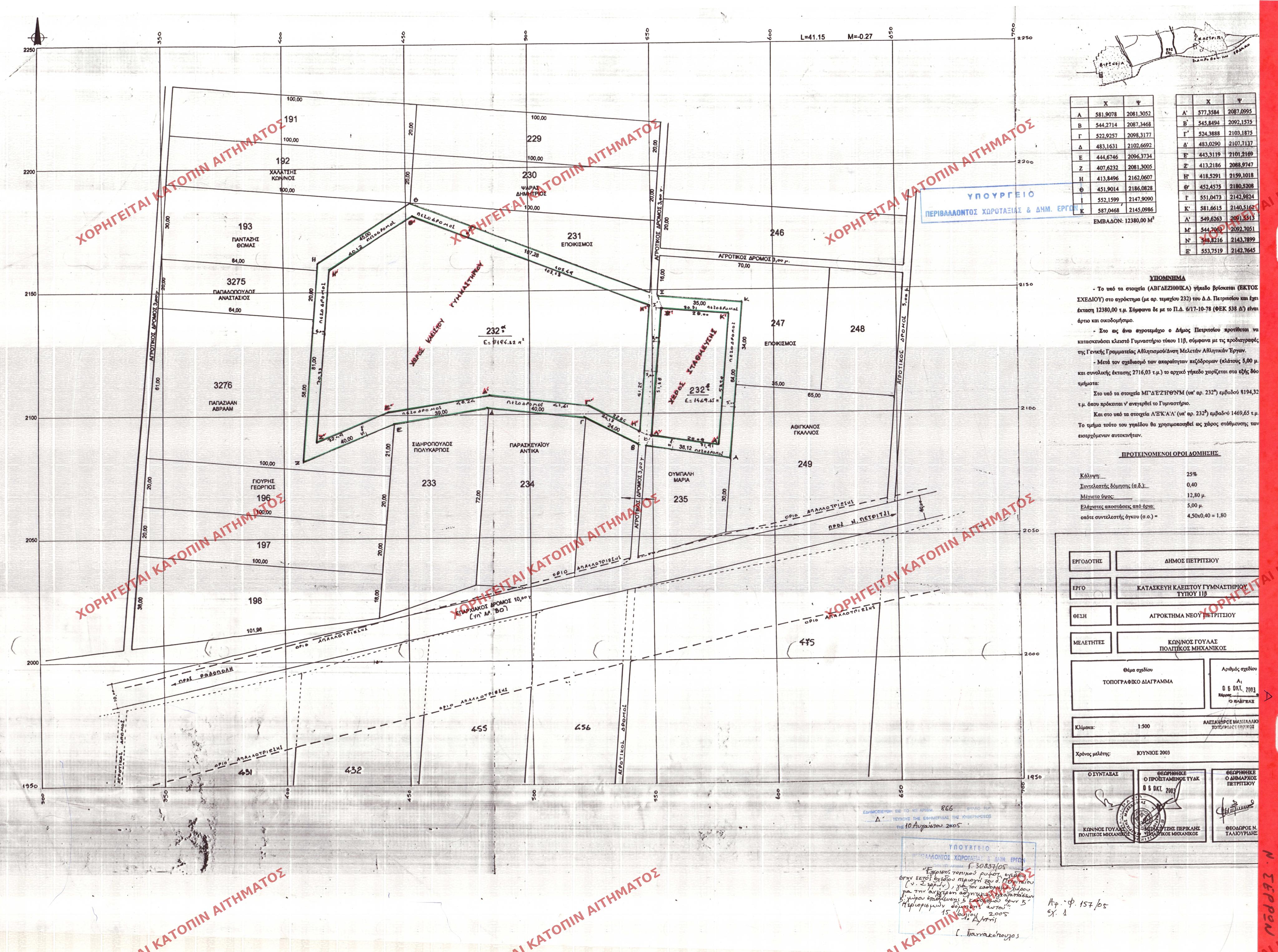 | 79125 | Π.Ε. ΣΕΡΡΩΝ | ΠΕΤΡΙΤΣΙ | Ν.ΠΕΤΡΙΤΣΙ | 116 / 2005 | 684 | ΠΡΩΤΟΤΥΠΟ | - | Προβολή | ||