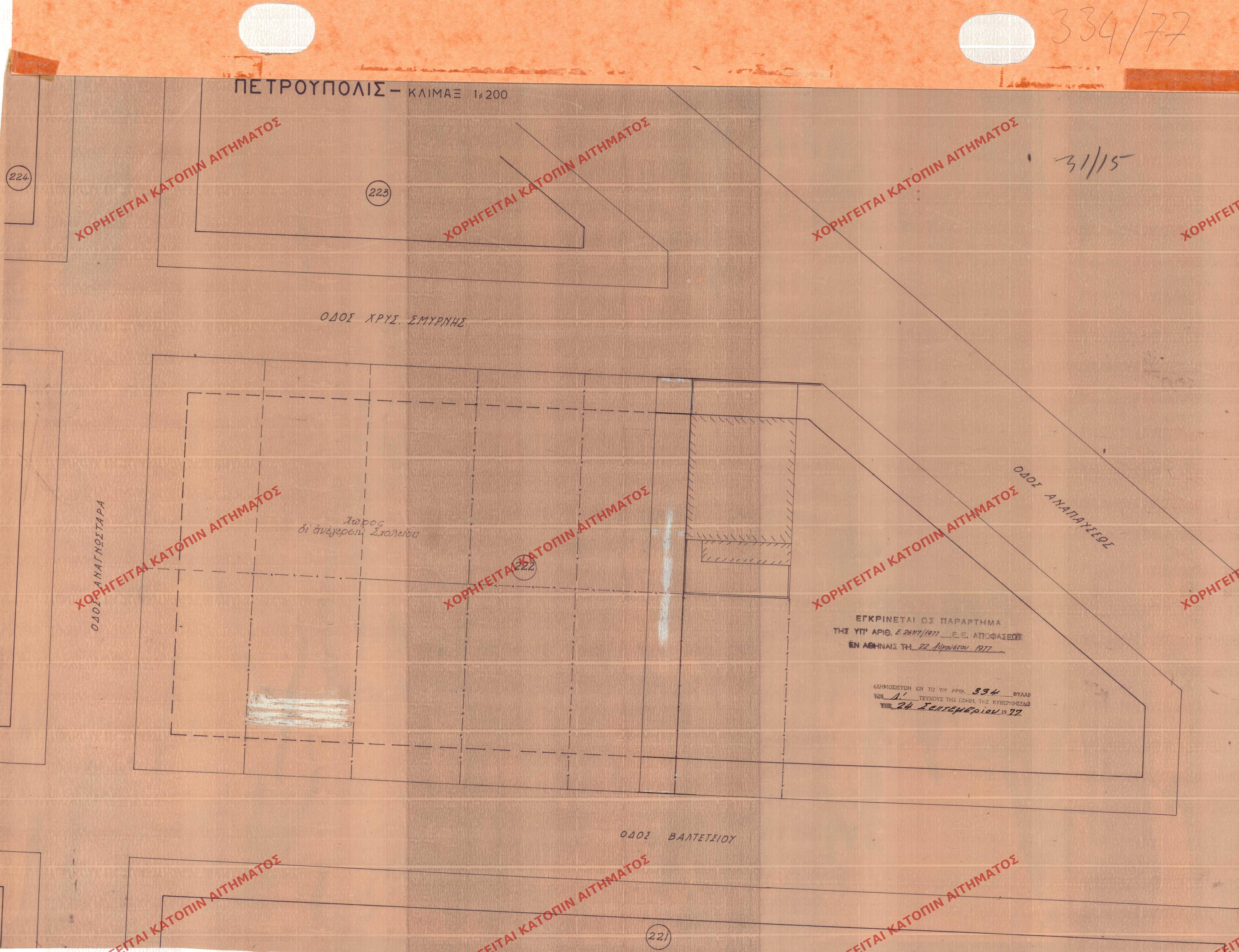 | 9054 | Π.Ε. ΑΤΤΙΚΗΣ | ΠΕΤΡΟΥΠΟΛΗ | - | 334 / 1977 | 26171 | ΔΗΜΟΣΙΕΥΜΕΝΟ ΣΕ ΦΕΚ | 01 | Προβολή | ||