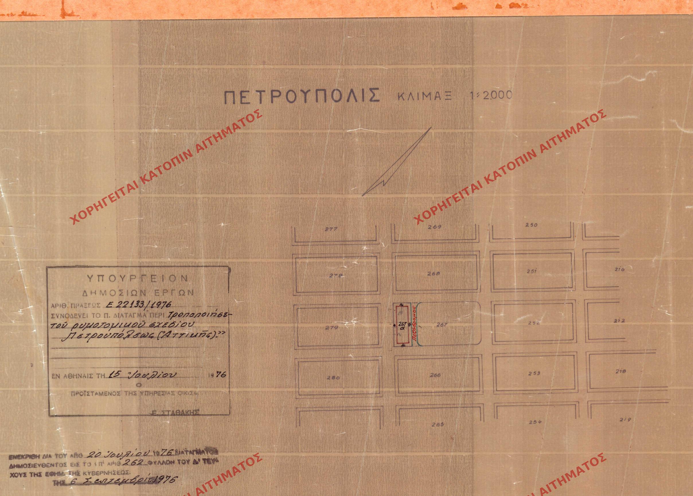 | 8370 | Π.Ε. ΑΤΤΙΚΗΣ | ΠΕΤΡΟΥΠΟΛΗ | - | 262 / 1976 | 22133 | ΔΗΜΟΣΙΕΥΜΕΝΟ ΣΕ ΦΕΚ | 01 | Προβολή | ||