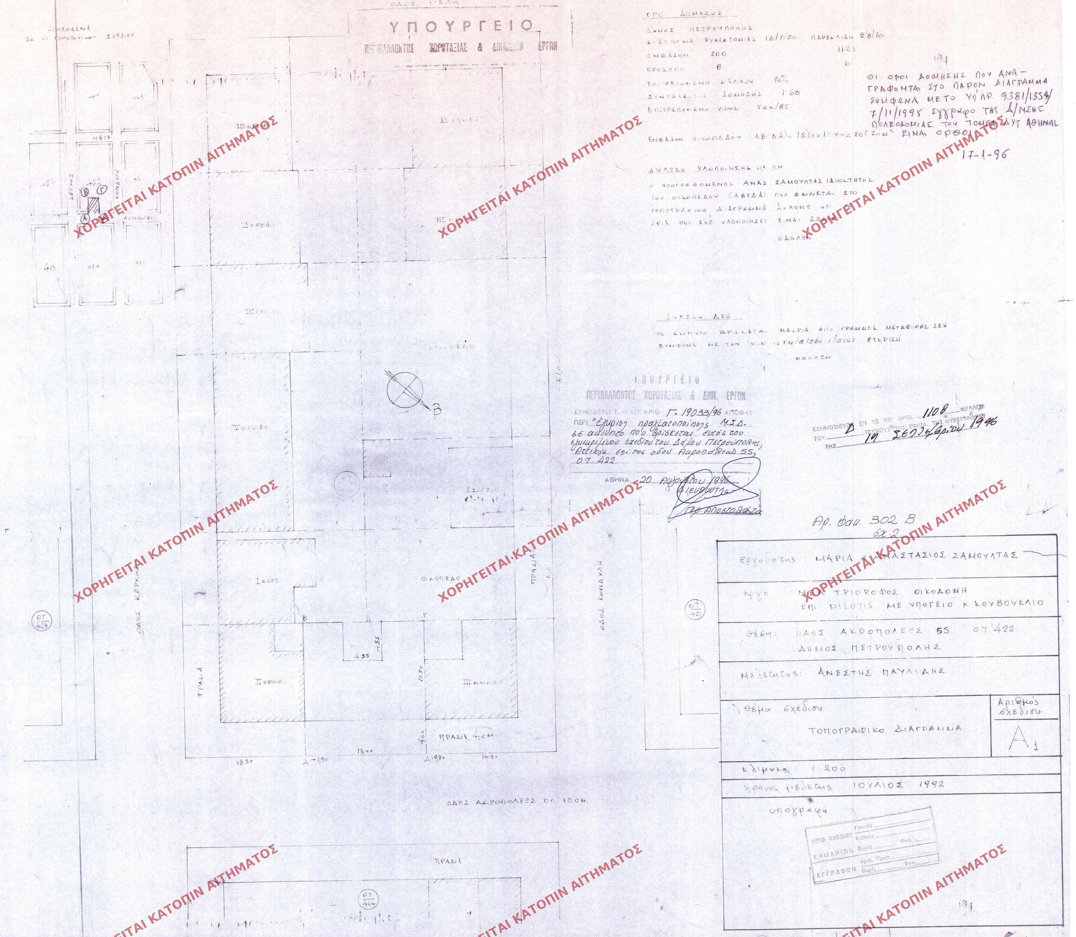 | 92782 | Π.Ε. ΑΤΤΙΚΗΣ | ΠΕΤΡΟΥΠΟΛΗ | - | 1108 / 1996 | 19033 | ΠΡΩΤΟΤΥΠΟ | Α1 | Προβολή | ||