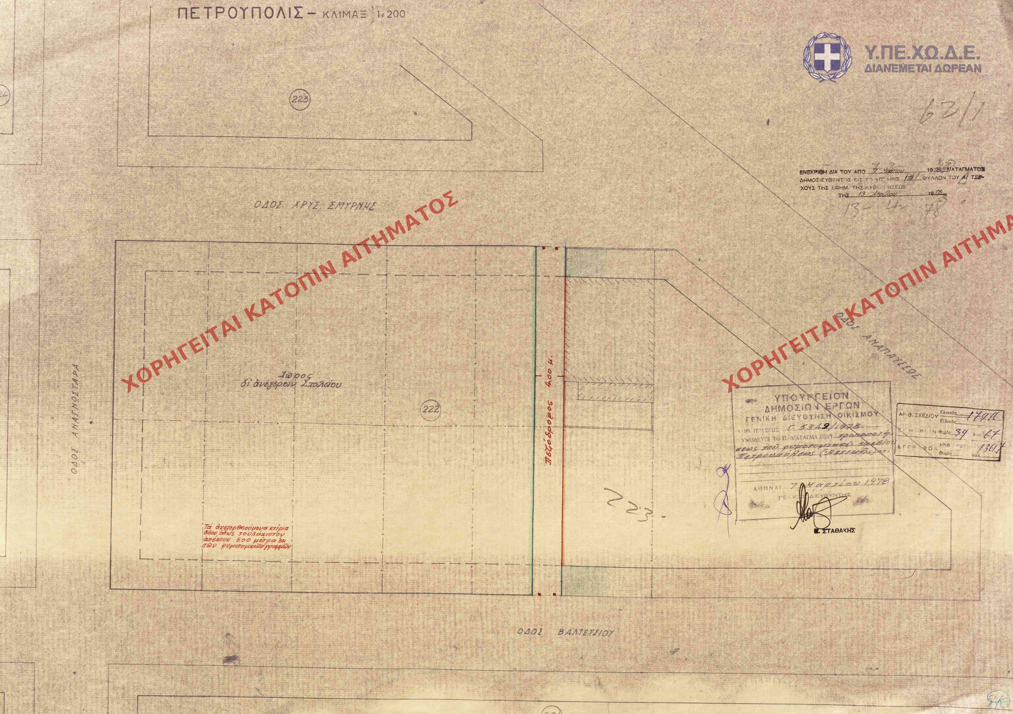 | 74635 | Π.Ε. ΑΤΤΙΚΗΣ | ΠΕΤΡΟΥΠΟΛΗ | - | 254 / 1957 | 21422 | ΠΡΩΤΟΤΥΠΟ | 1 | Προβολή | ||