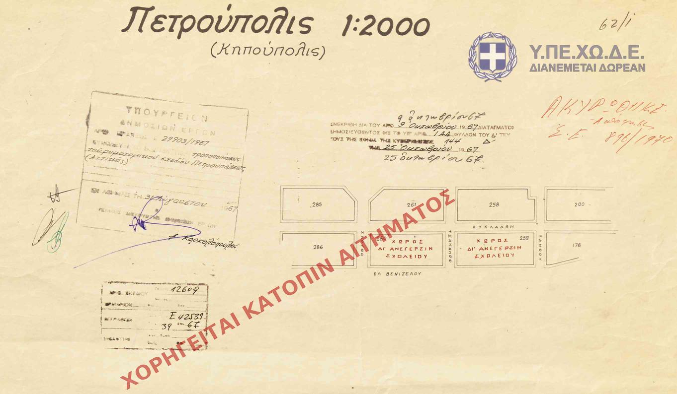 | 74624 | Π.Ε. ΑΤΤΙΚΗΣ | ΠΕΤΡΟΥΠΟΛΗ | - | 144 / 1967 | 29903 | ΠΡΩΤΟΤΥΠΟ | 1 | Προβολή | ||