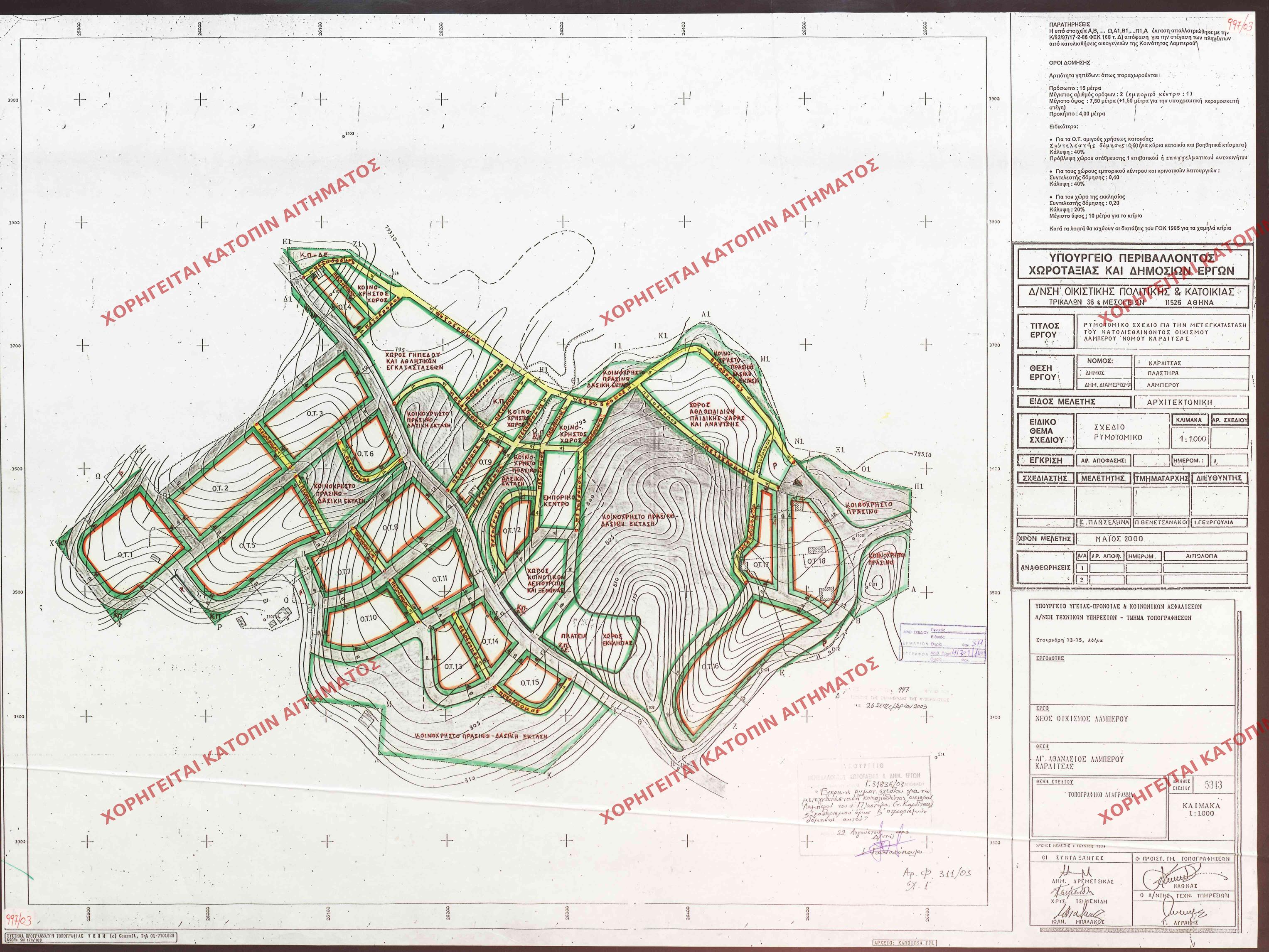 | Κωδ. Διαγρ. | Περιφερειακή Ενότητα | Δήμος κατά ΦΕΚ / Κοινότητα | Θέση | Αριθμός και Έτος ΦΕΚ | Αριθμός Πράξης | Τύπος Διαγράμματος | Πινακίδα | Ενέργειες | ||