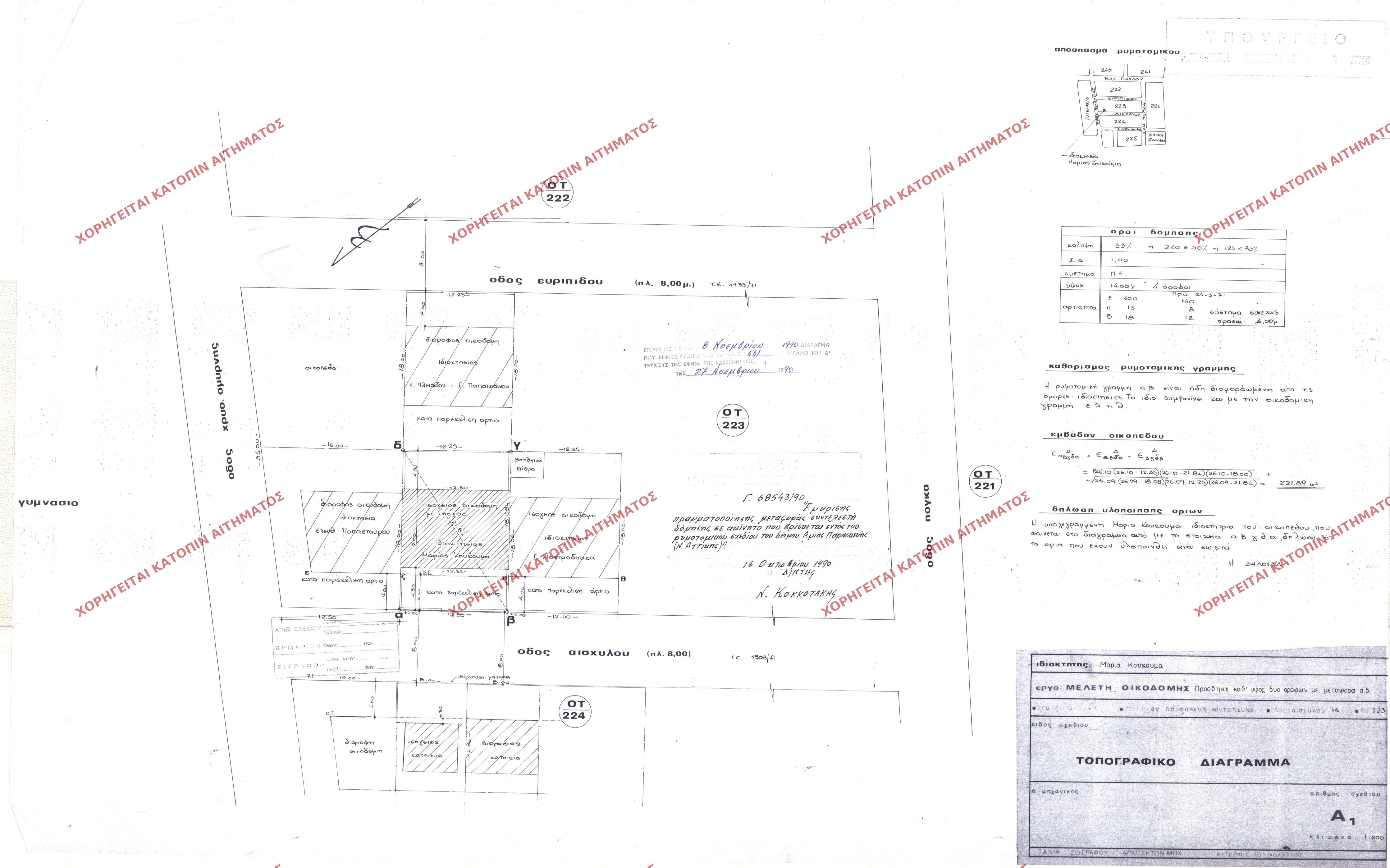 | 90780 | Π.Ε. ΑΤΤΙΚΗΣ | ΑΓΙΑ ΠΑΡΑΣΚΕΥΗ | - | 457 / 1988 | 37546 | ΠΡΩΤΟΤΥΠΟ | Τ-2 Π | Προβολή | ||