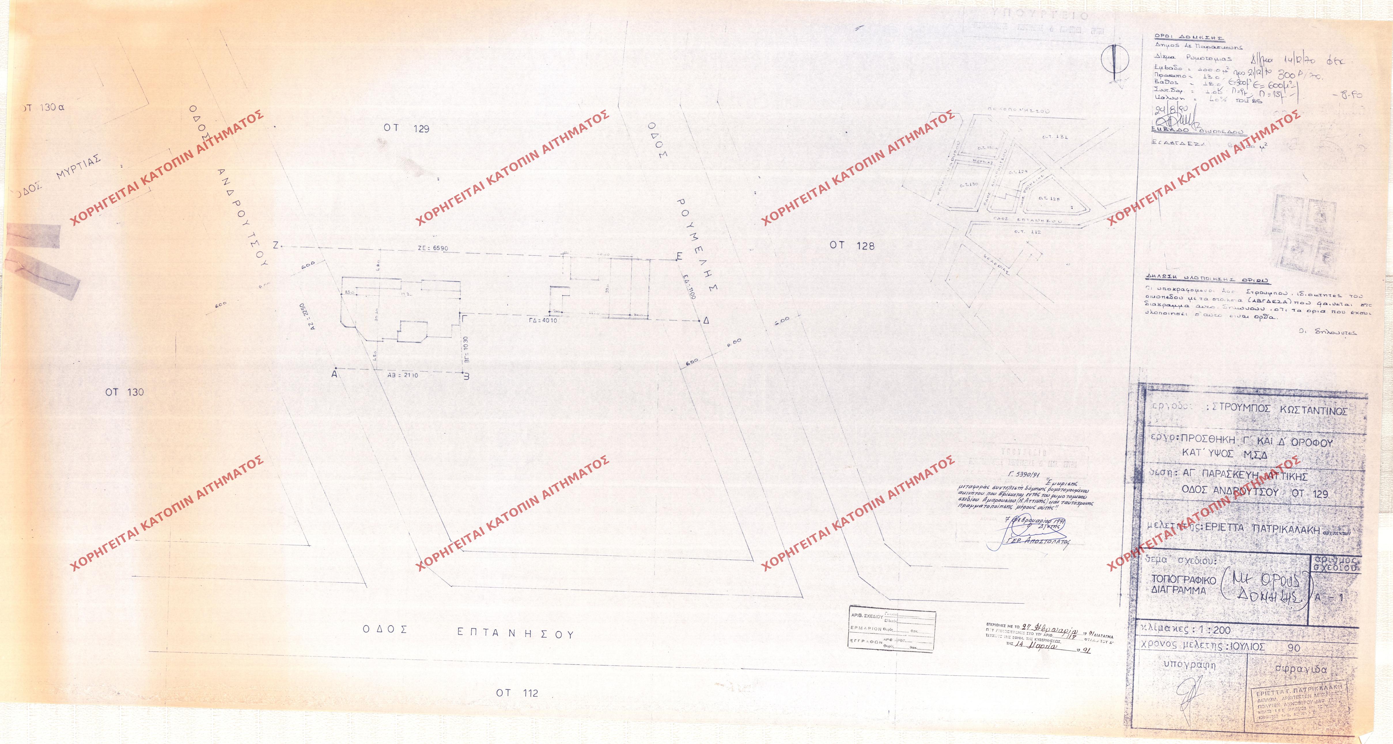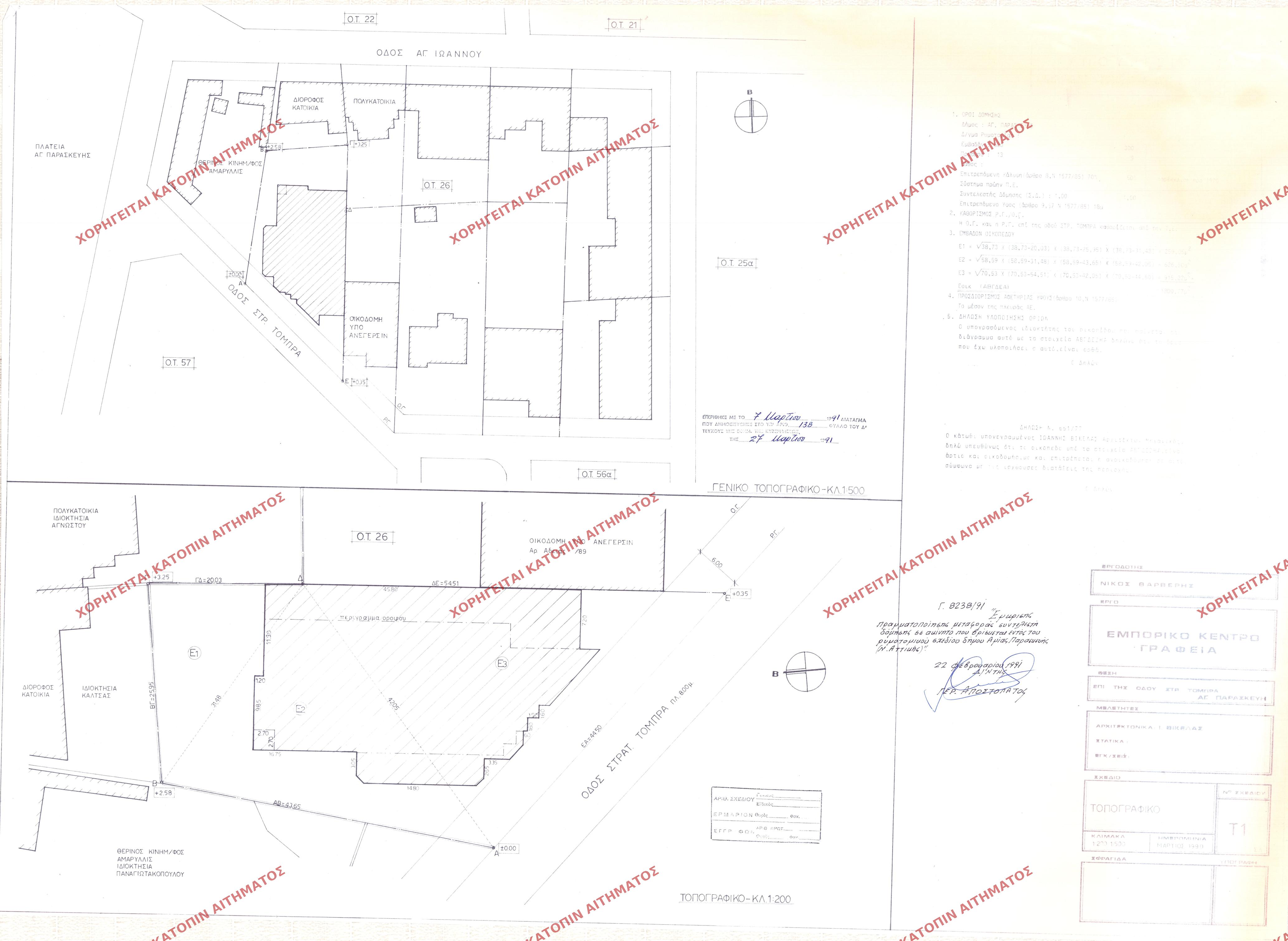 | 91785 | Π.Ε. ΑΤΤΙΚΗΣ | ΑΓΙΑ ΠΑΡΑΣΚΕΥΗ | - | 138 / 1991 | 8238 | ΠΡΩΤΟΤΥΠΟ | Τ2 | Προβολή | ||