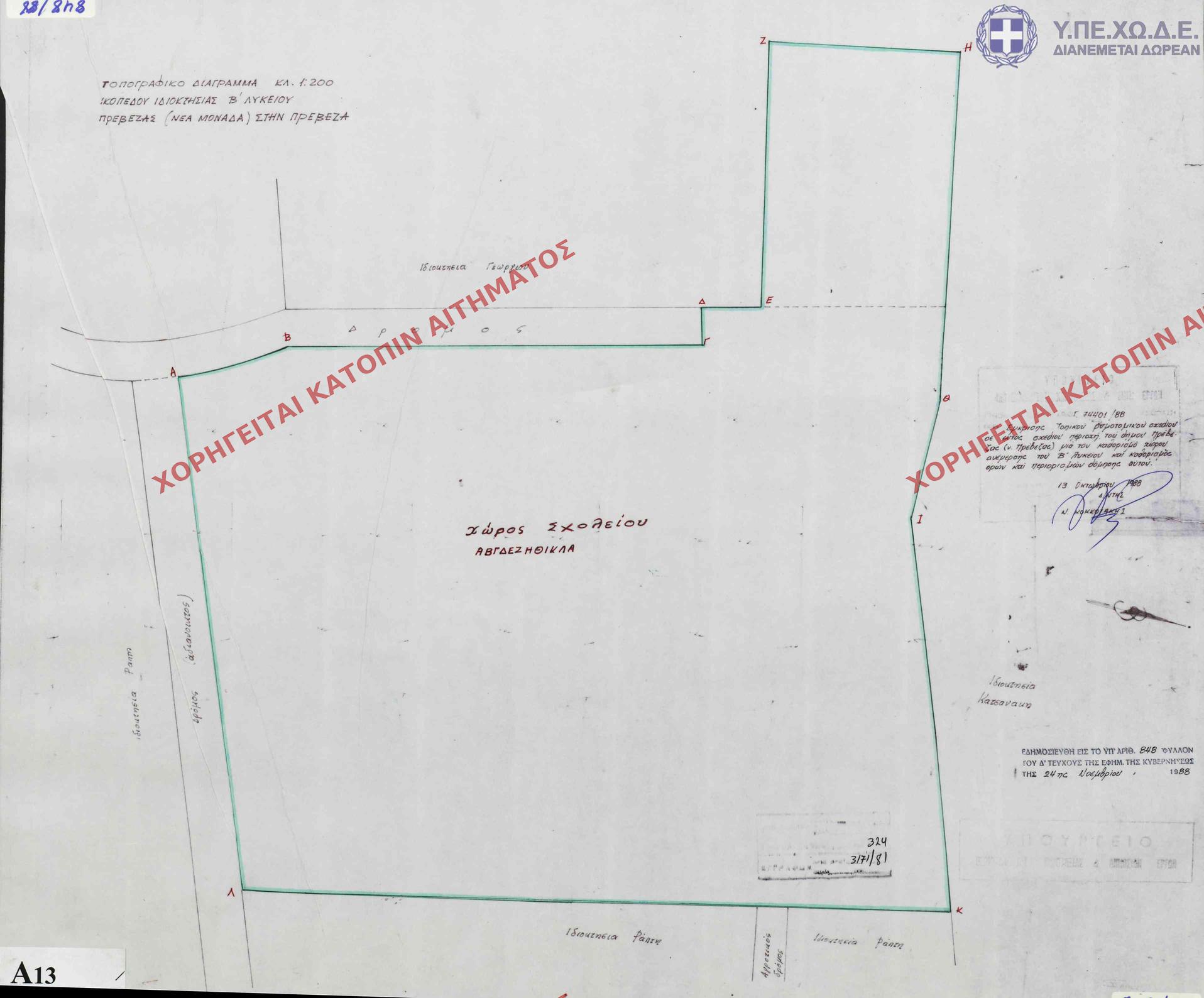 | 88201 | Π.Ε. ΠΡΕΒΕΖΑΣ | ΠΡΕΒΕΖΑ | - | 818 / 1988 | 77056 | ΠΡΩΤΟΤΥΠΟ | Π-1.2-1.3.2 | Προβολή | ||