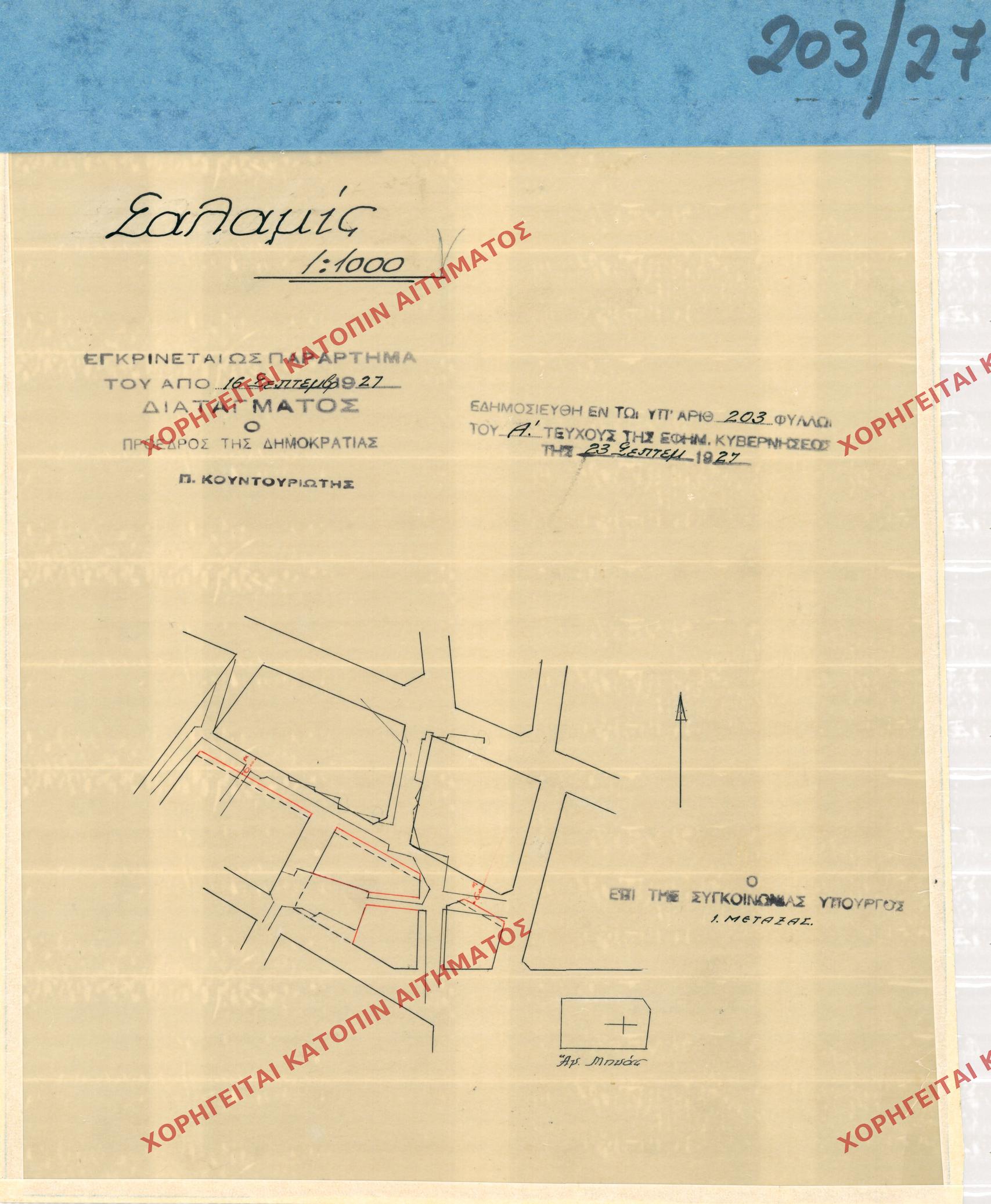 | 4660 | Π.Ε. ΑΤΤΙΚΗΣ | ΣΑΛΑΜΙΝΑ | - | 203 / 1927 | 0 | ΔΗΜΟΣΙΕΥΜΕΝΟ ΣΕ ΦΕΚ | 01 | Προβολή | ||