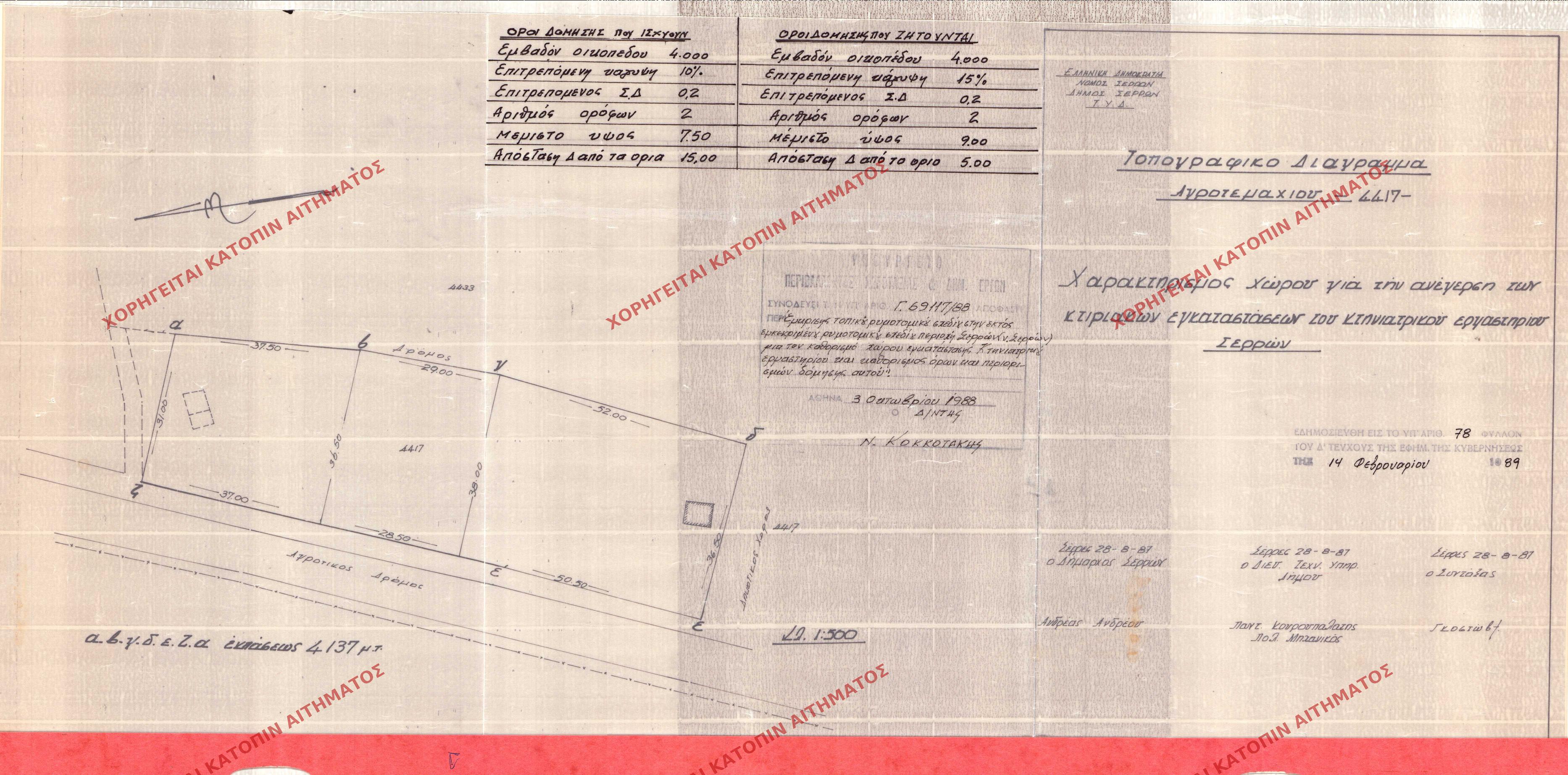 | 23667 | Π.Ε. ΣΕΡΡΩΝ | ΣΕΡΡΕΣ | - | 78 / 1989 | 69117 | ΔΗΜΟΣΙΕΥΜΕΝΟ ΣΕ ΦΕΚ | 01 | Προβολή | ||