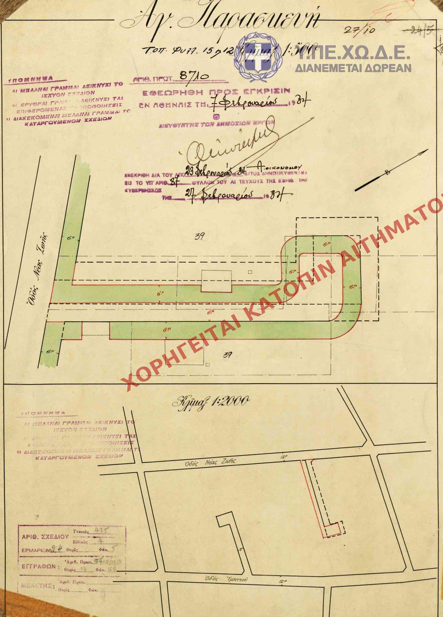| 63236 | Π.Ε. ΑΤΤΙΚΗΣ | ΑΓΙΑ ΠΑΡΑΣΚΕΥΗ | - | 87 / 1935 | 13720 | ΠΡΩΤΟΤΥΠΟ | 1 | Προβολή | ||