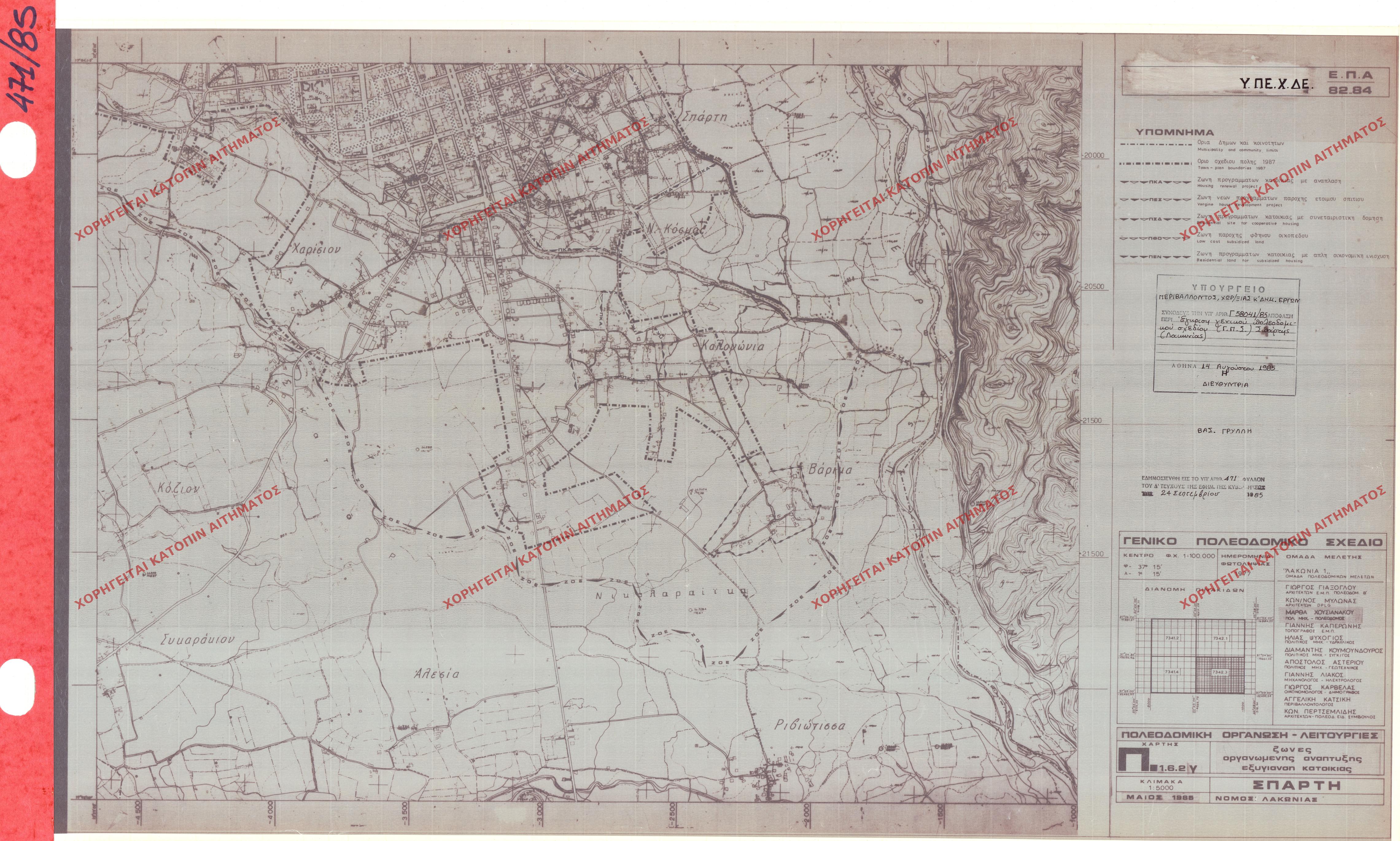 | 88001 | Π.Ε. ΛΑΚΩΝΙΑΣ | ΣΠΑΡΤΗ | - | 471 / 1985 | 58041 | ΠΡΩΤΟΤΥΠΟ | Π-1.2-1.3.2 α | Προβολή |