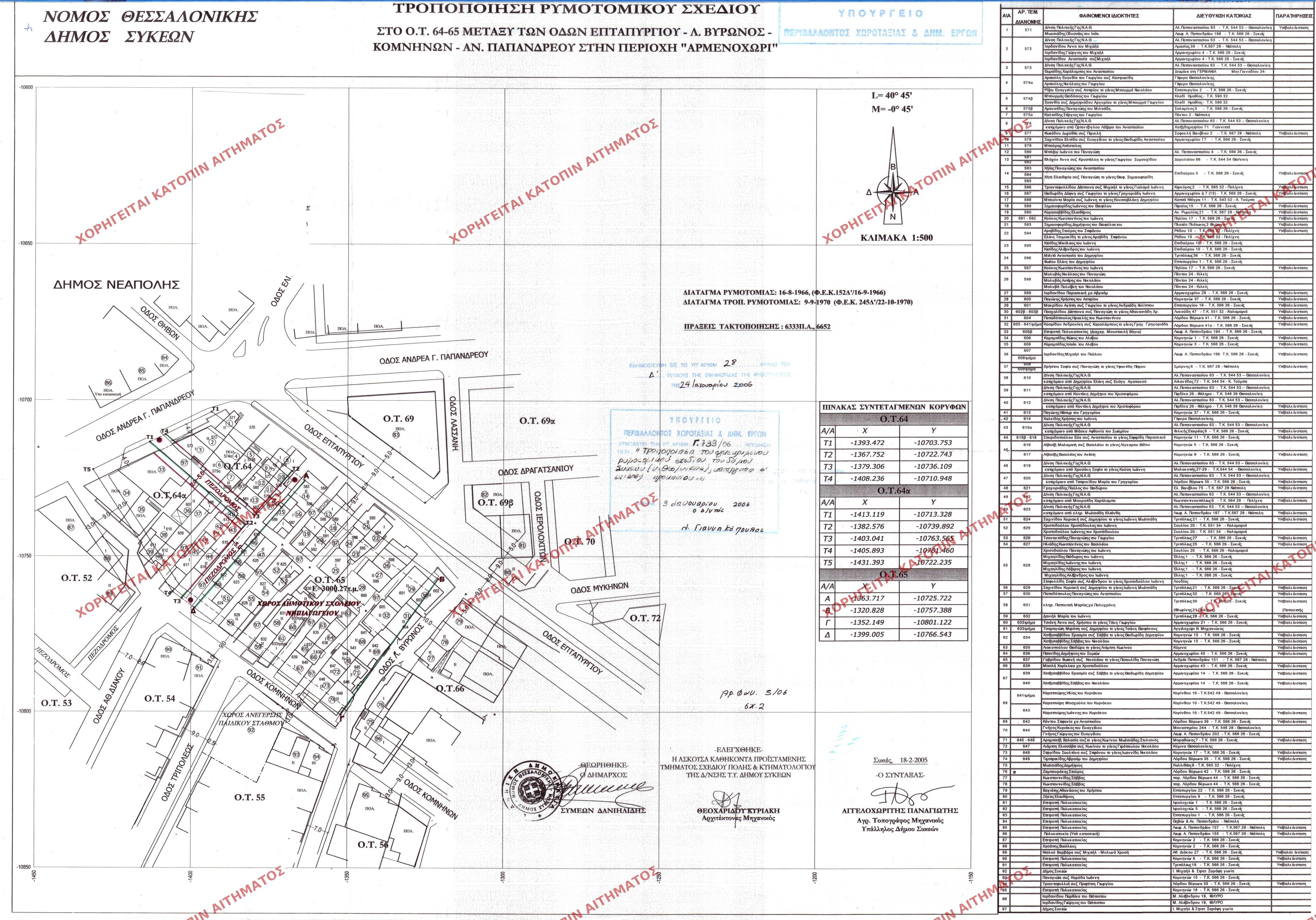 | Κωδ. Διαγρ. | Περιφερειακή Ενότητα | Δήμος κατά ΦΕΚ / Κοινότητα | Θέση | Αριθμός και Έτος ΦΕΚ | Αριθμός Πράξης | Τύπος Διαγράμματος | Πινακίδα | Ενέργειες | ||