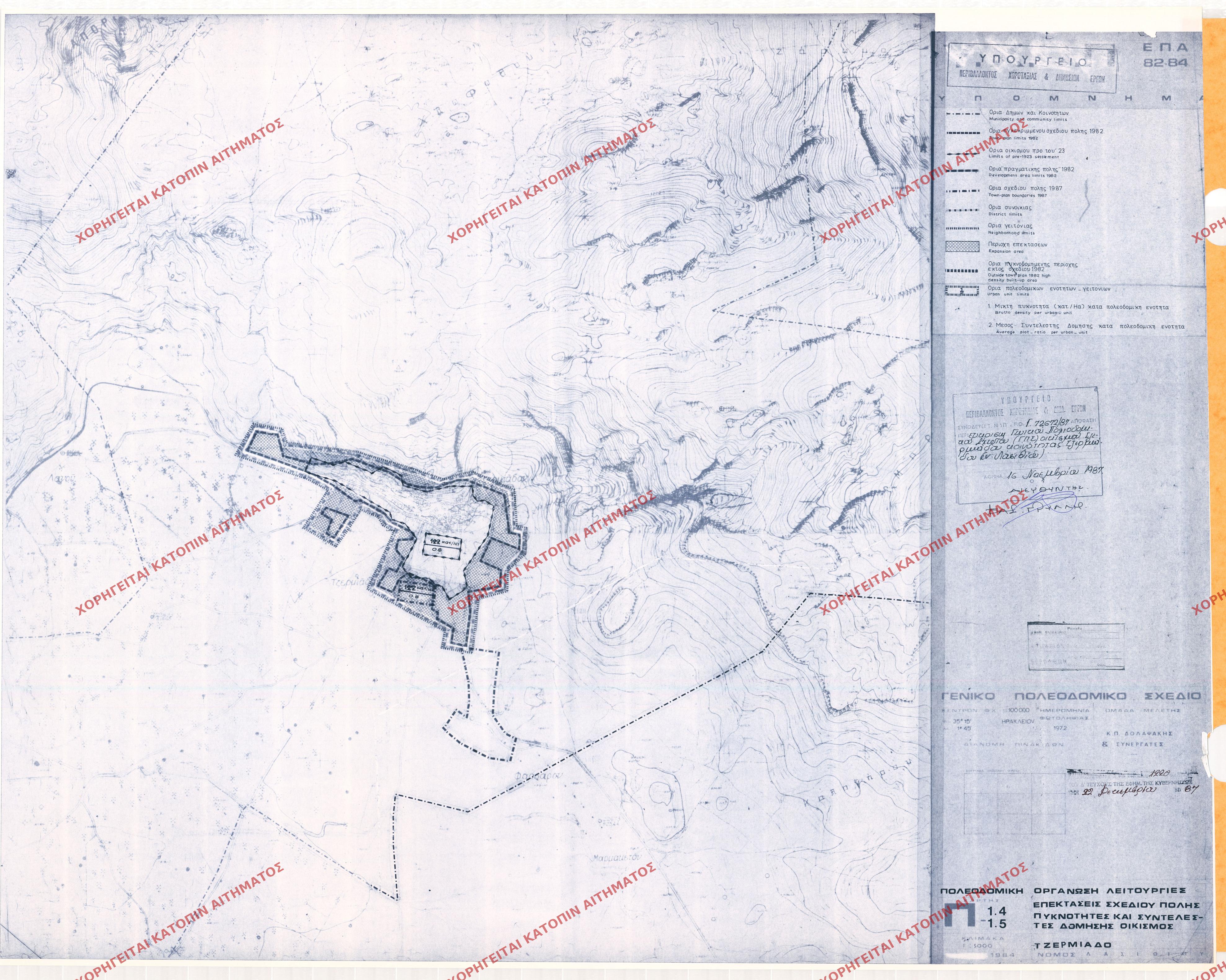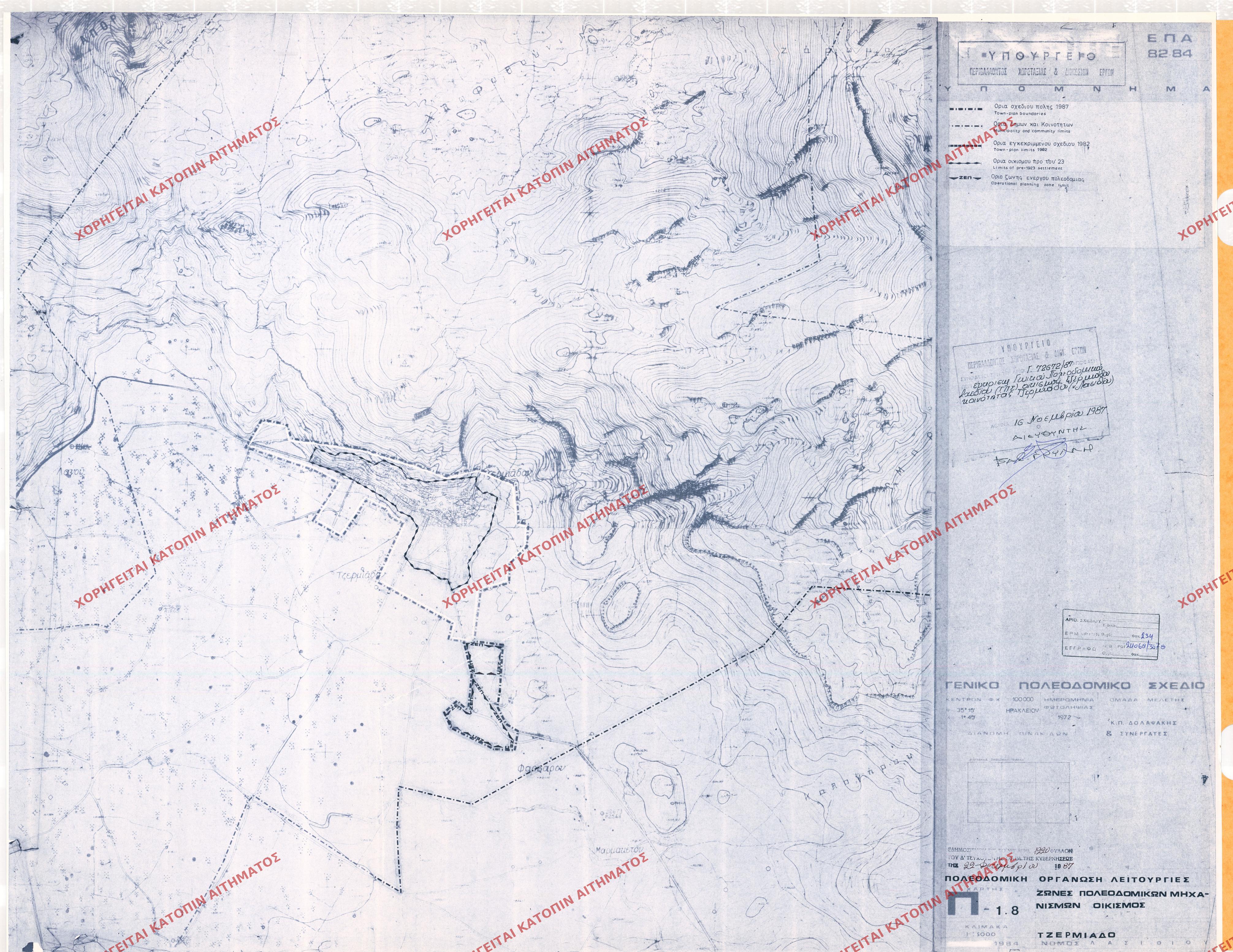 | 85422 | Π.Ε. ΛΑΣΙΘΙΟΥ | ΤΖΕΡΜΙΑΔΟ | - | 1220 / 1987 | 72672 | ΠΡΩΤΟΤΥΠΟ | Π-1.7 | Προβολή | ||