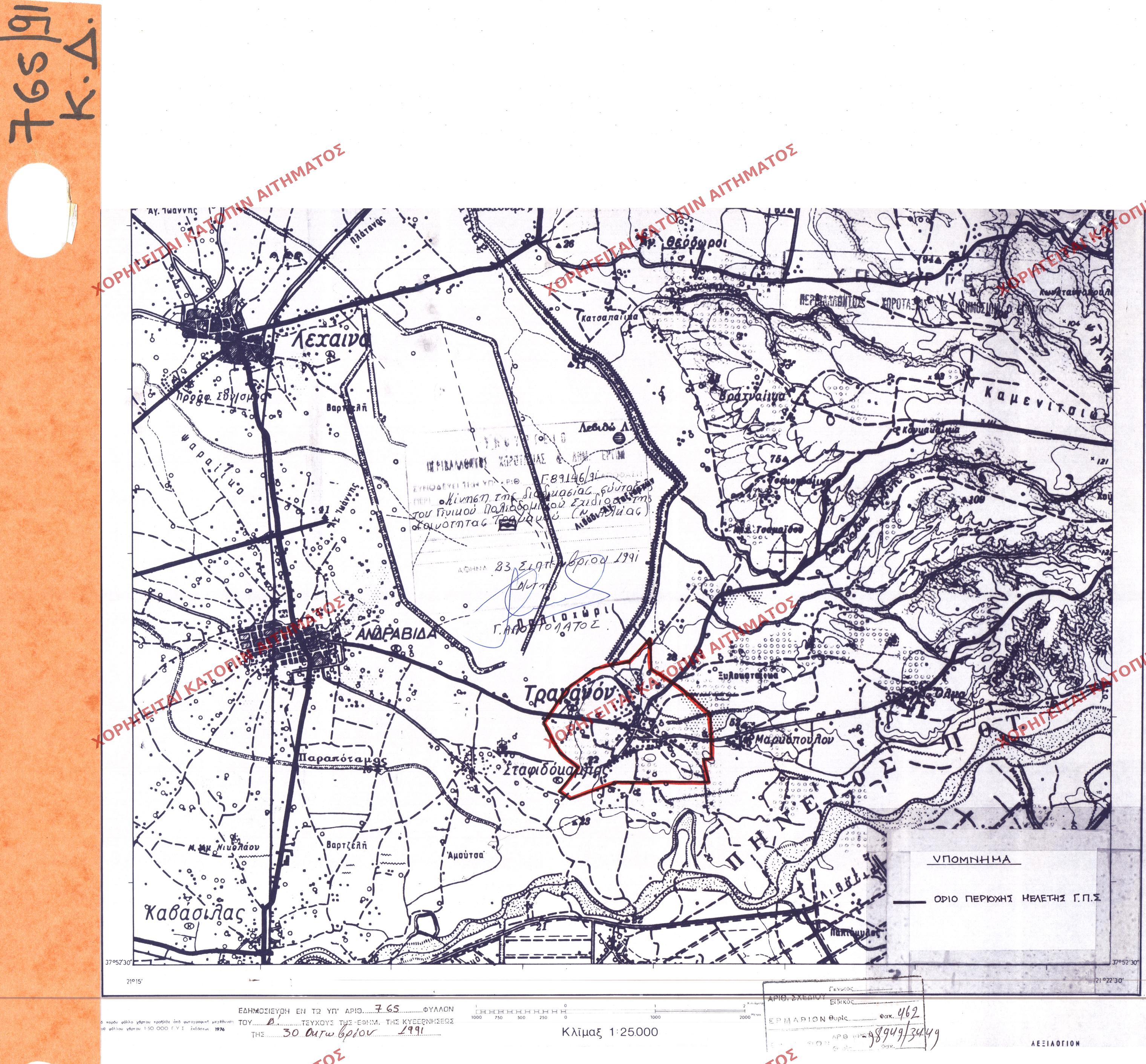 | 86781 | Π.Ε. ΗΛΕΙΑΣ | ΤΡΑΓΑΝΟ | - | 765 / 1991 | 89146 | ΠΡΩΤΟΤΥΠΟ | Π | Προβολή | ||
