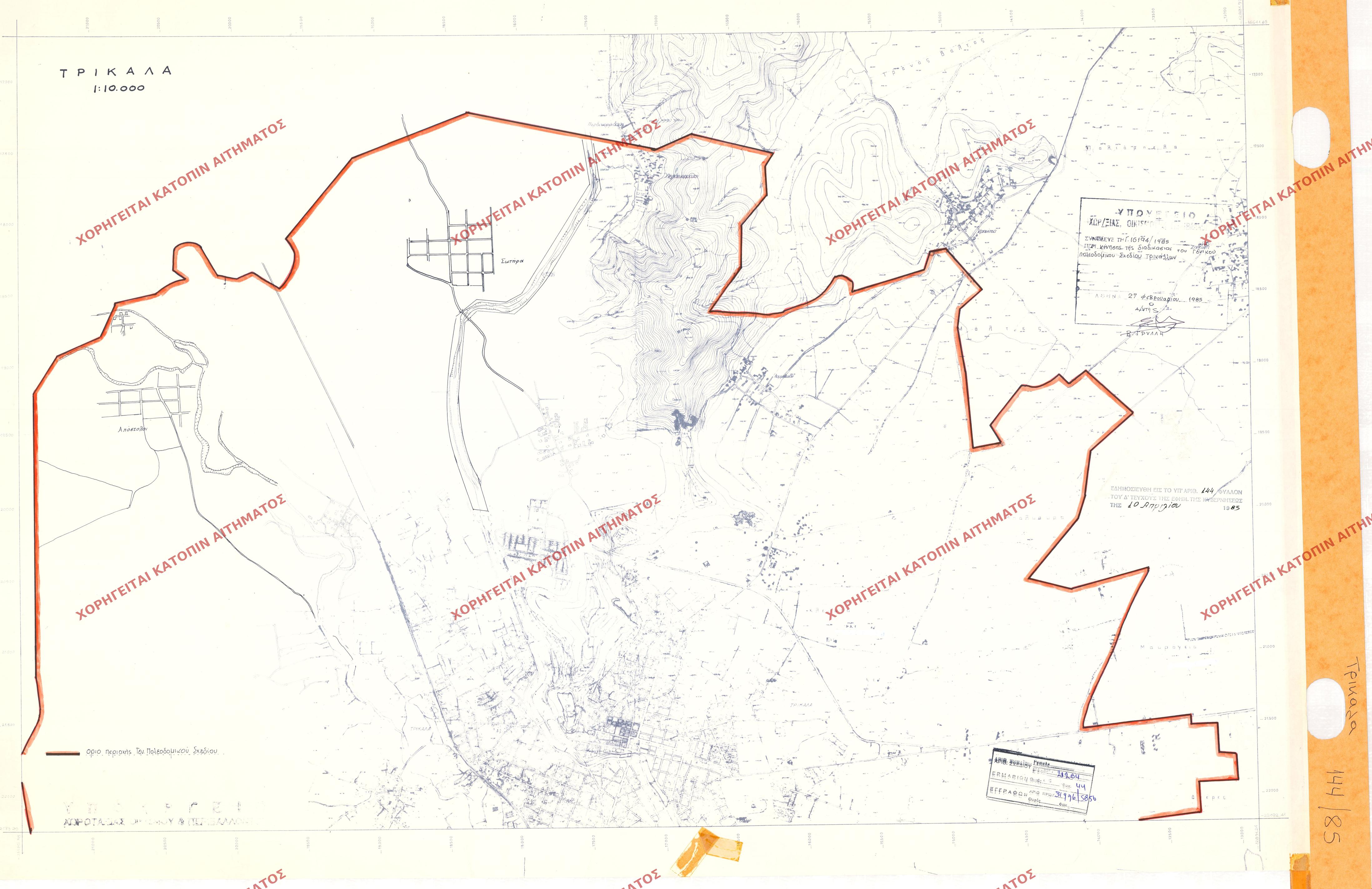 | 83231 | Π.Ε. ΤΡΙΚΑΛΩΝ | ΤΡΙΚΑΛΑ | - | 144 / 1985 | 16194 | ΠΡΩΤΟΤΥΠΟ | Π | Προβολή | ||