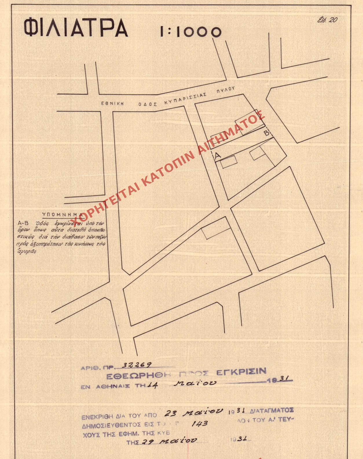 | 28230 | Π.Ε. ΜΕΣΣΗΝΙΑΣ | ΦΙΛΙΑΤΡΑ | - | 143 / 1931 | 32269 | ΔΗΜΟΣΙΕΥΜΕΝΟ ΣΕ ΦΕΚ | 01 | Προβολή | ||