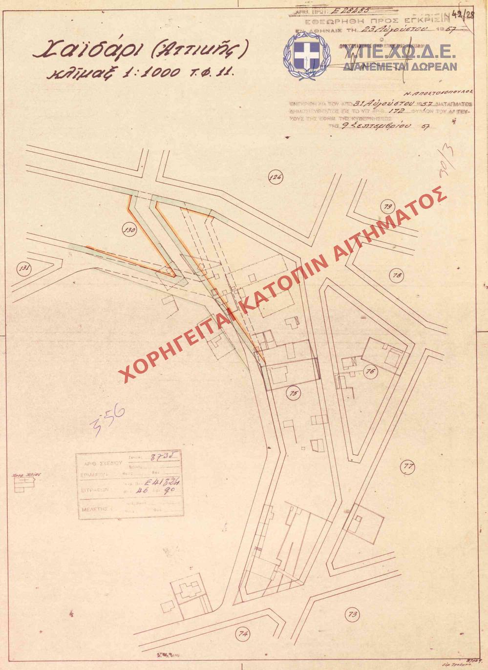 | 72159 | Π.Ε. ΑΤΤΙΚΗΣ | ΧΑΙΔΑΡΙ | - | 208 / 1956 | 16620 | ΠΡΩΤΟΤΥΠΟ | 1 | Προβολή | ||