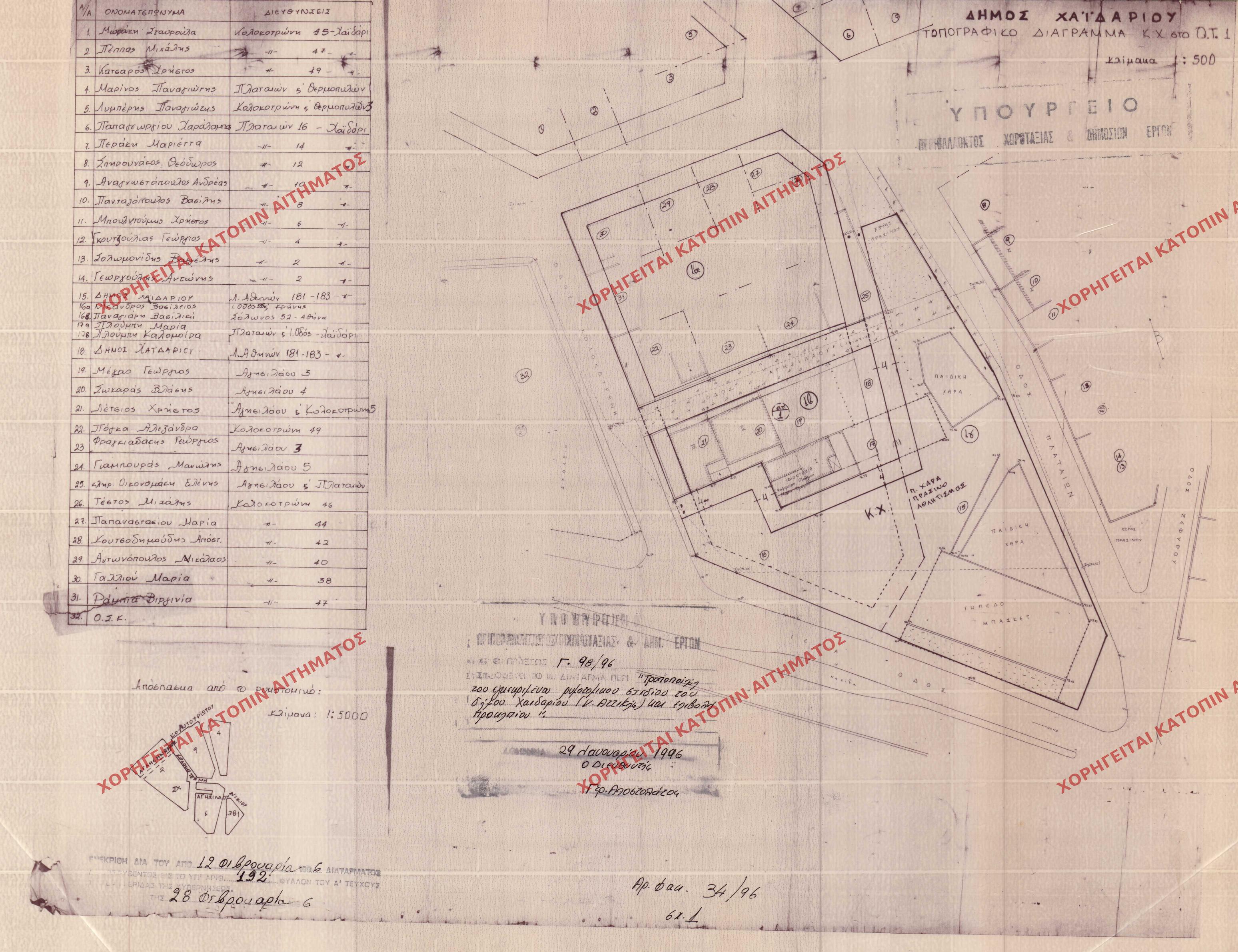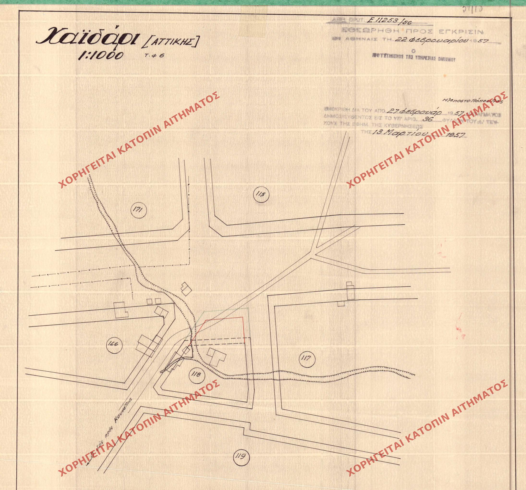 | 12596 | Π.Ε. ΑΤΤΙΚΗΣ | ΧΑΙΔΑΡΙ | - | 299 / 1956 | 6000 | ΔΗΜΟΣΙΕΥΜΕΝΟ ΣΕ ΦΕΚ | 01 | Προβολή | ||