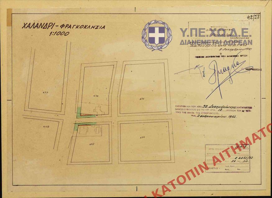 | 49951 | Π.Ε. ΑΤΤΙΚΗΣ | ΧΑΛΑΝΔΡΙ | - | 142 / 1962 | 25194 | ΠΡΩΤΟΤΥΠΟ | 1 | Προβολή | ||