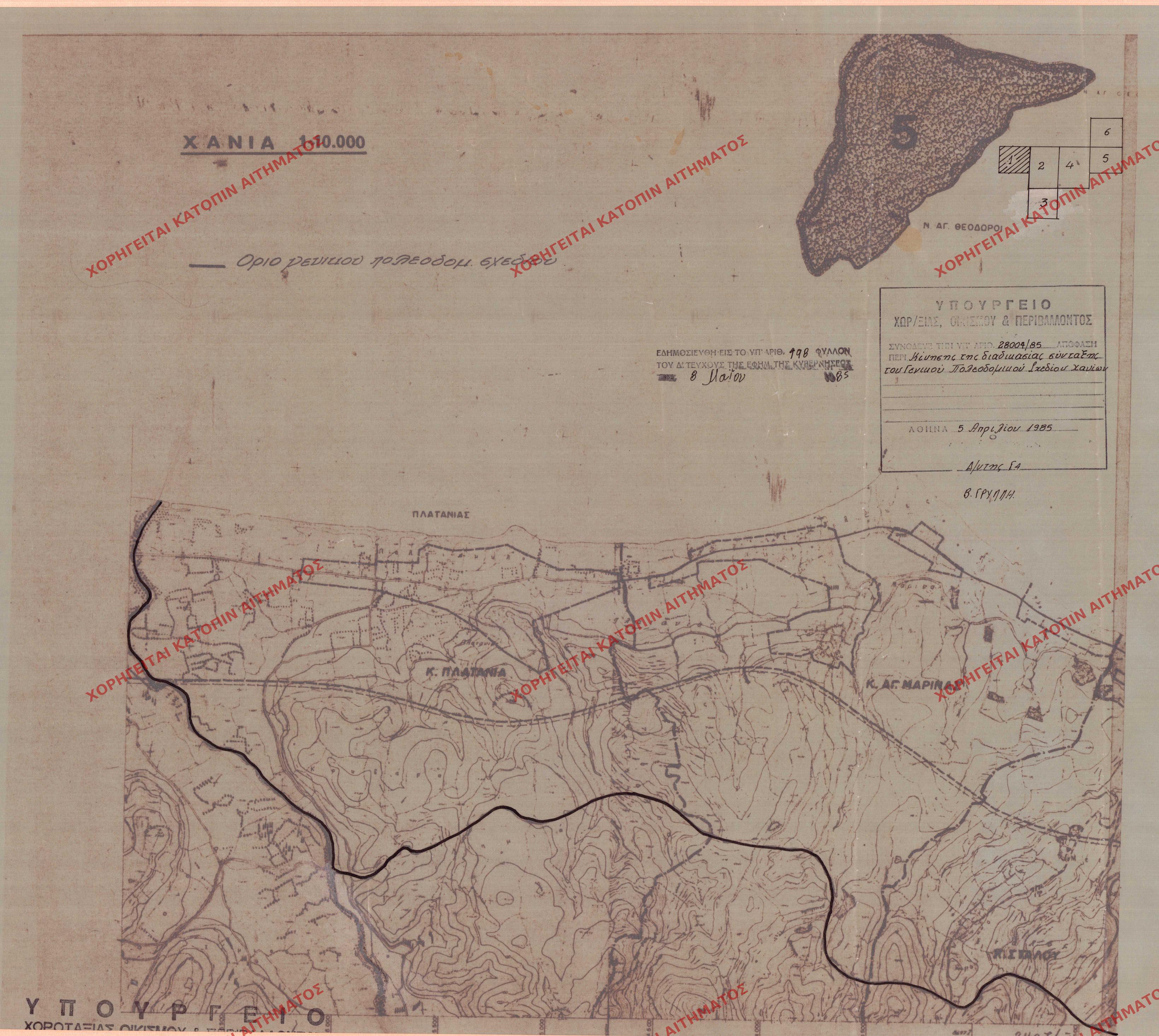 | 30799 | Π.Ε. ΧΑΝΙΩΝ | ΧΑΝΙΑ | - | 198 / 1985 | 28004 | ΔΗΜΟΣΙΕΥΜΕΝΟ ΣΕ ΦΕΚ | Π | Προβολή | ||