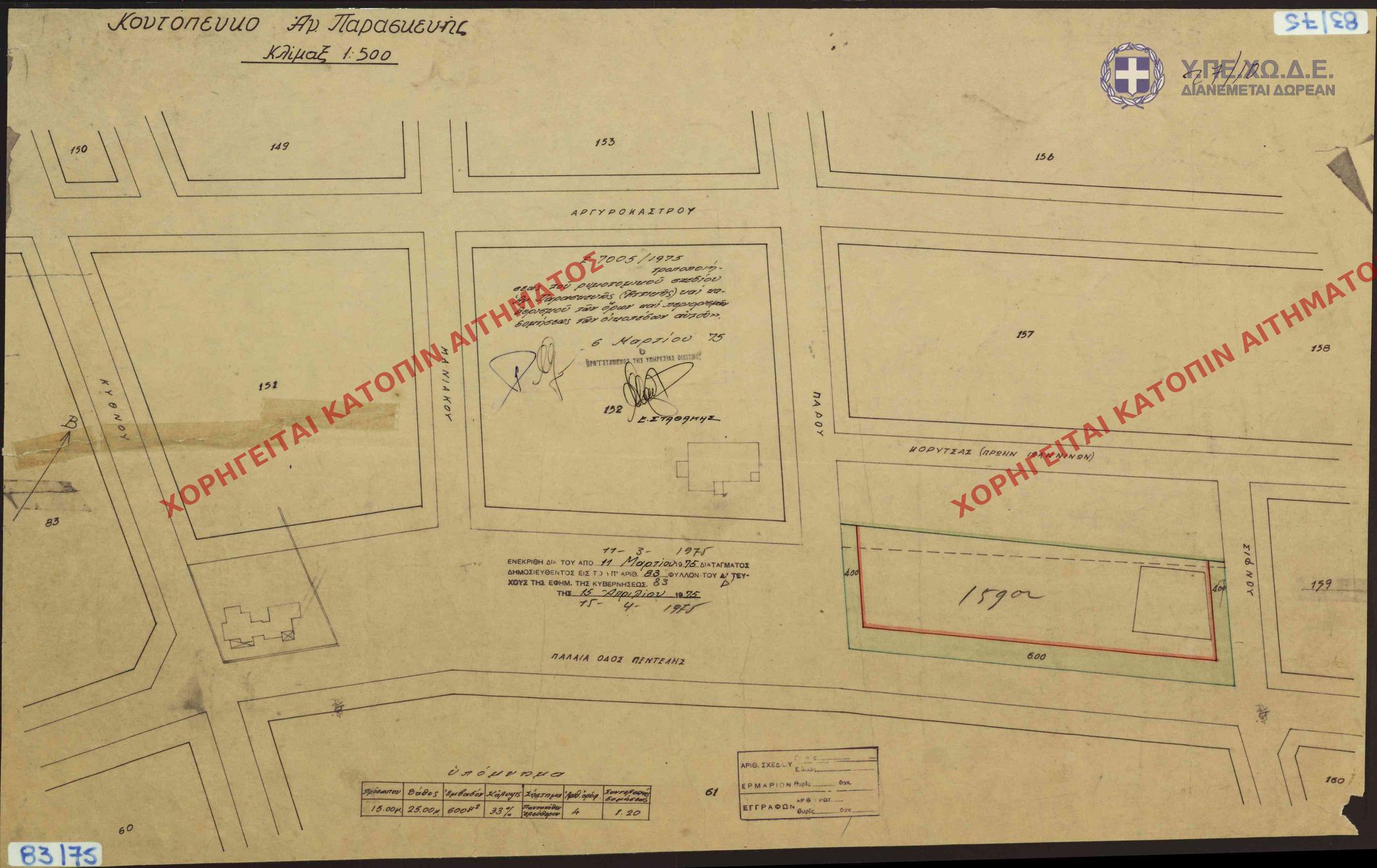 | 63108 | Π.Ε. ΑΤΤΙΚΗΣ | ΑΓΙΑ ΠΑΡΑΣΚΕΥΗ | - | 83 / 1975 | 7005 | ΠΡΩΤΟΤΥΠΟ | 1 | Προβολή | ||