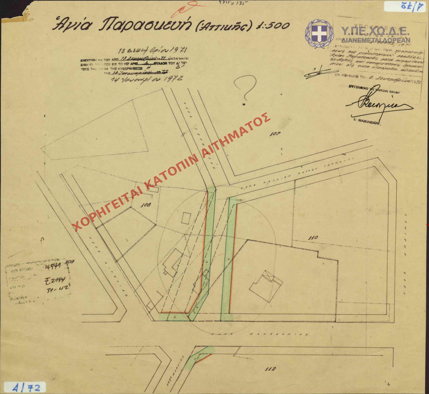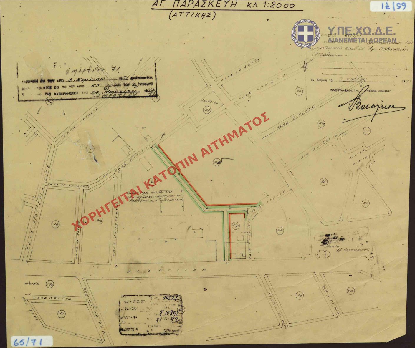 | 63109 | Π.Ε. ΑΤΤΙΚΗΣ | ΑΓΙΑ ΠΑΡΑΣΚΕΥΗ | - | 65 / 1971 | 6927 | ΠΡΩΤΟΤΥΠΟ | 1 | Προβολή | ||