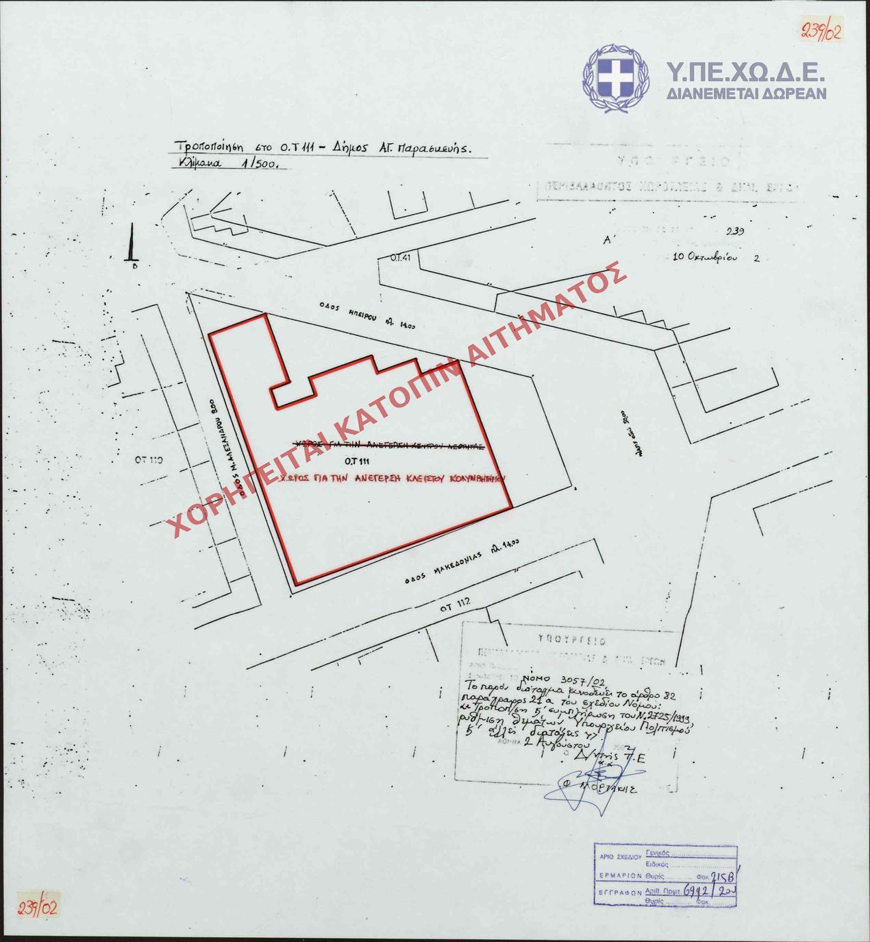 | 63111 | Π.Ε. ΑΤΤΙΚΗΣ | ΑΓΙΑ ΠΑΡΑΣΚΕΥΗ | - | 268 / 1975 | 31055 | ΠΡΩΤΟΤΥΠΟ | 1 | Προβολή | ||