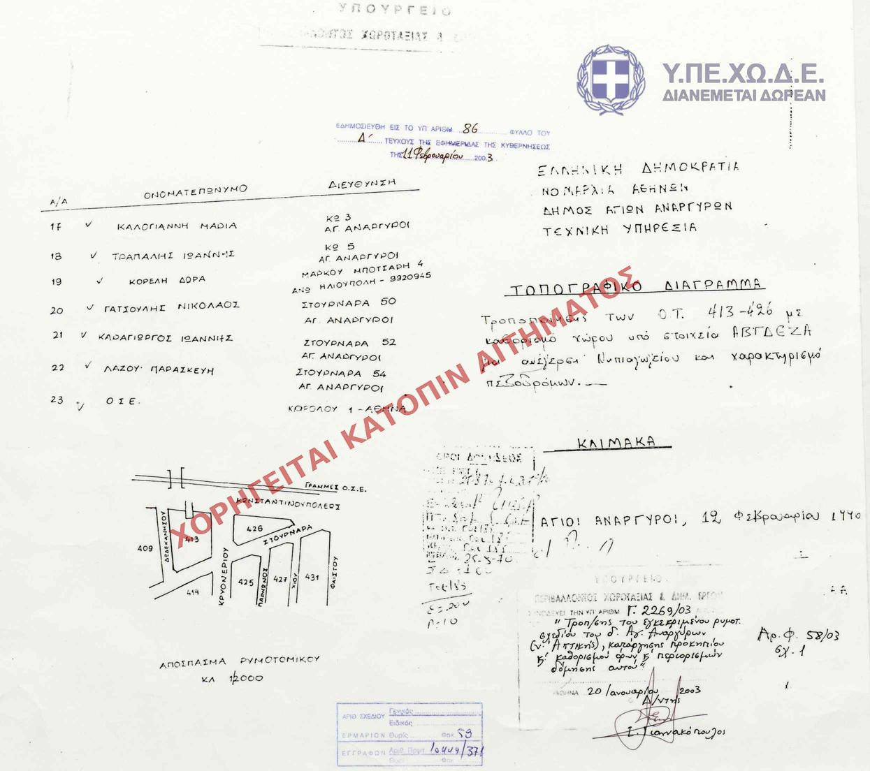 | 62688 | Π.Ε. ΑΤΤΙΚΗΣ | ΑΓΙΟΙ ΑΝΑΡΓΥΡΟΙ | - | 643 / 2003 | 2328 | ΠΡΩΤΟΤΥΠΟ | 1 | Προβολή | ||