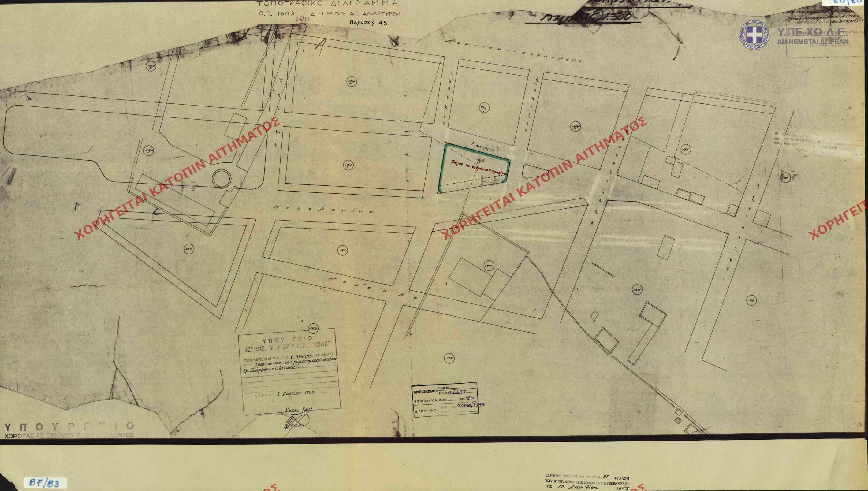 | 62719 | Π.Ε. ΑΤΤΙΚΗΣ | ΑΓΙΟΙ ΑΝΑΡΓΥΡΟΙ | - | 87 / 1983 | 11241 | ΠΡΩΤΟΤΥΠΟ | 1 | Προβολή | ||